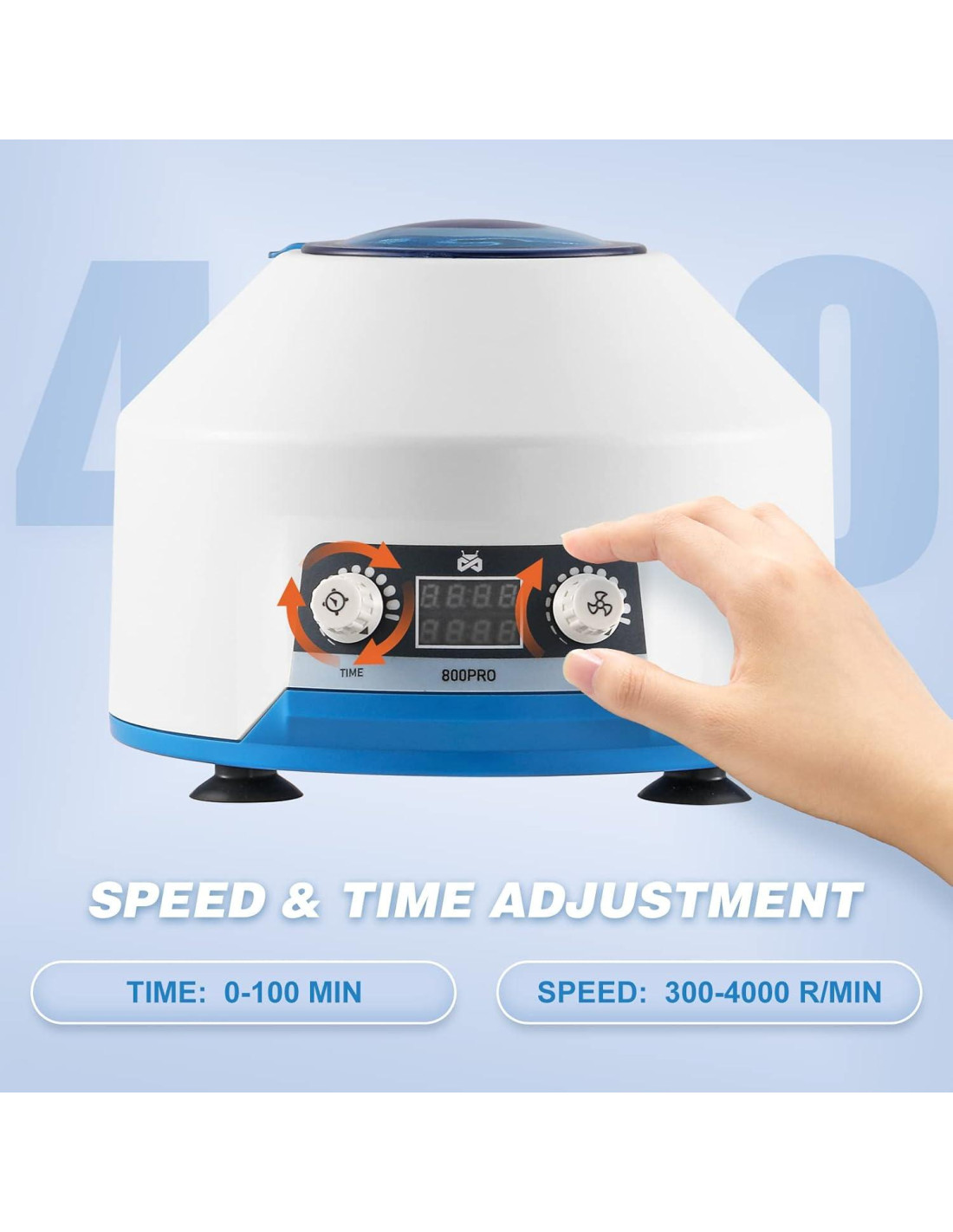 - [Control de Velocidad y Tiempo]: Las perillas de tiempo y velocidad de la máquina de centrífuga de PRP te permiten personalizar el proceso de separación según tus necesidades específicas. La configuración de velocidad determina qué tan rápido gira el rotor, mientras que la configuración de tiempo determina cuánto dura el proceso de centrifugación.