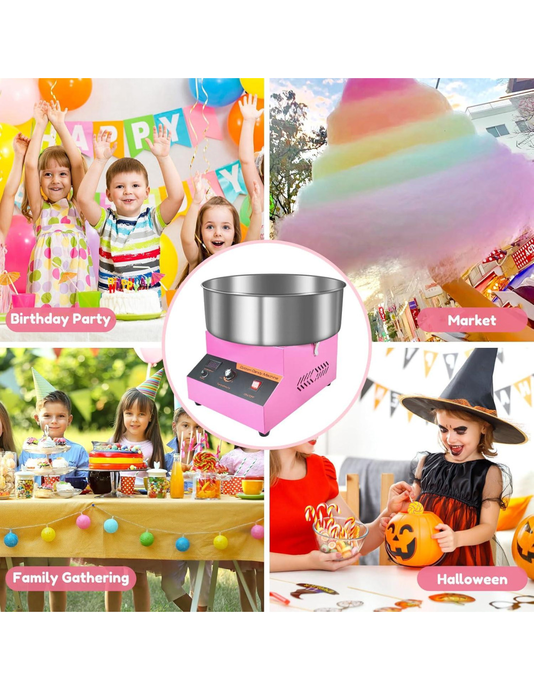 - Azúcares de hilado, caramelos de leche, caramelos duros, azúcar granulada, o cualquiera de tus caramelos duros favoritos son aceptables para crear delicioso algodón de azúcar con nuestra máquina de algodón de azúcar. Es perfecta para uso en casa o para fiestas, carnavales, ferias, bodas, festivales, fiestas de cumpleaños, eventos deportivos, recaudación de fondos y como tu máquina de algodón de azúcar comercial, etc.