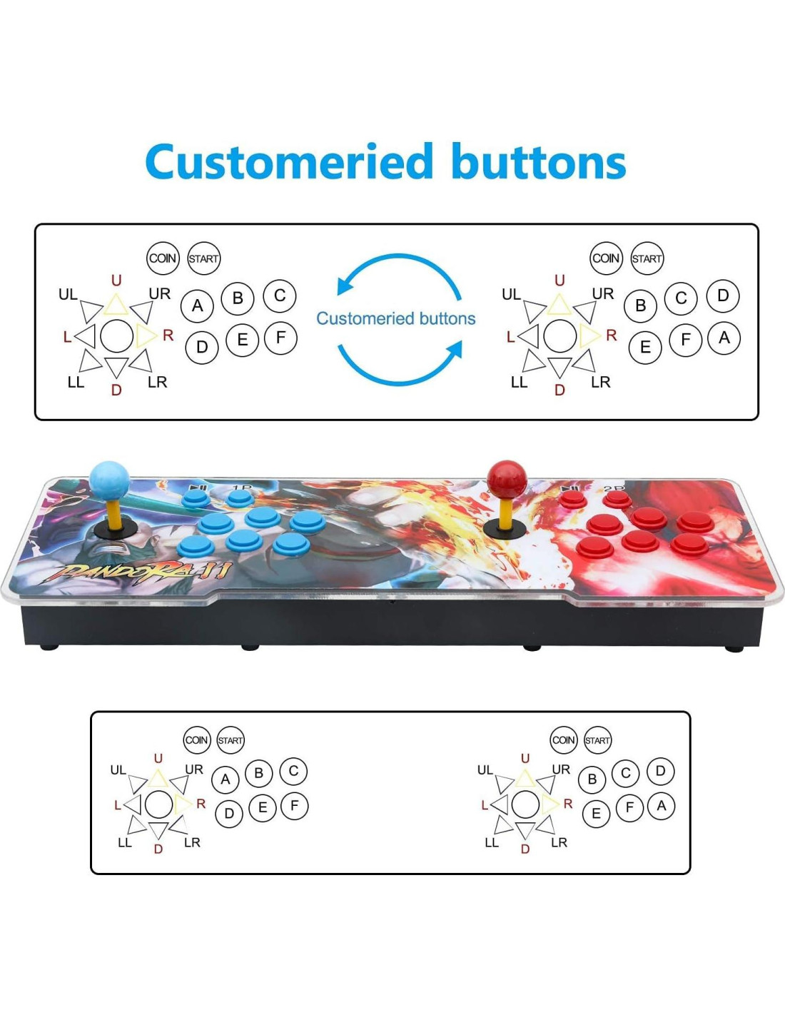 - MAYOR SISTEMA 3D - Nuestra Consola Arcade 3D Pandora Treasure está construida sobre el último sistema 3D. Regresa a la diversión de tus máquinas arcade clásicas favoritas, o experimenta lo último en juegos 3D modernos. Soporta jugar juegos en línea para 4 jugadores, permitiéndote aumentar la interacción con familiares y amigos. También puedes cambiar de idioma con una tecla para tu conveniencia.