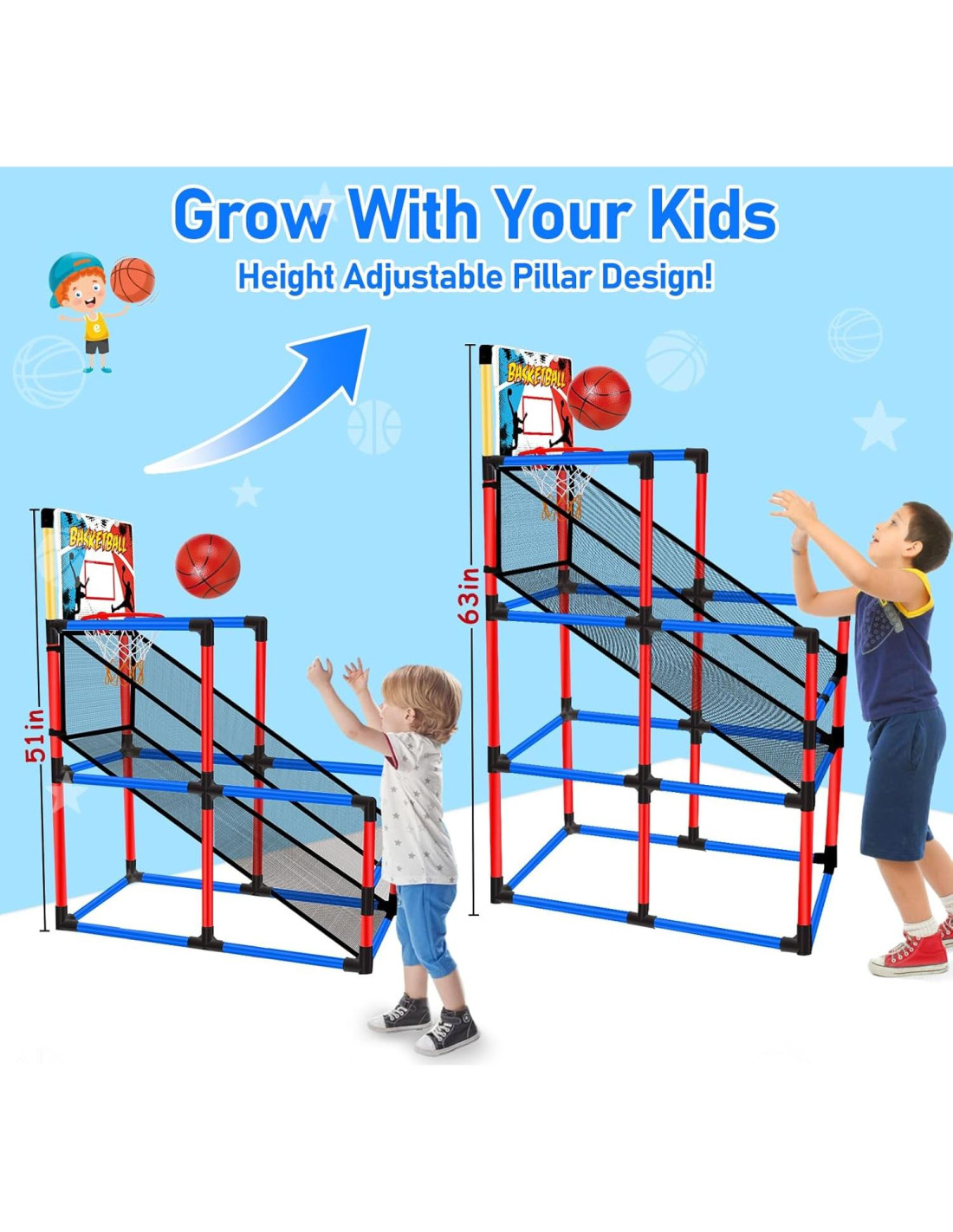 - [Juegos de Baloncesto de Alta Calidad] Nuestro juego de baloncesto arcade interior cuenta con una construcción robusta con tubos diseñados para ser más gruesos que otros. Los juegos al aire libre reforzados aseguran diversión y durabilidad sin fin. El diseño de la red de baloncesto puede devolver automáticamente la pelota a su posición original, eliminando la necesidad de correr para recoger la pelota. Juguetes sorprendentes para niños de 3 4 5 años, aro de baloncesto para niños de 5-7 8-12.
