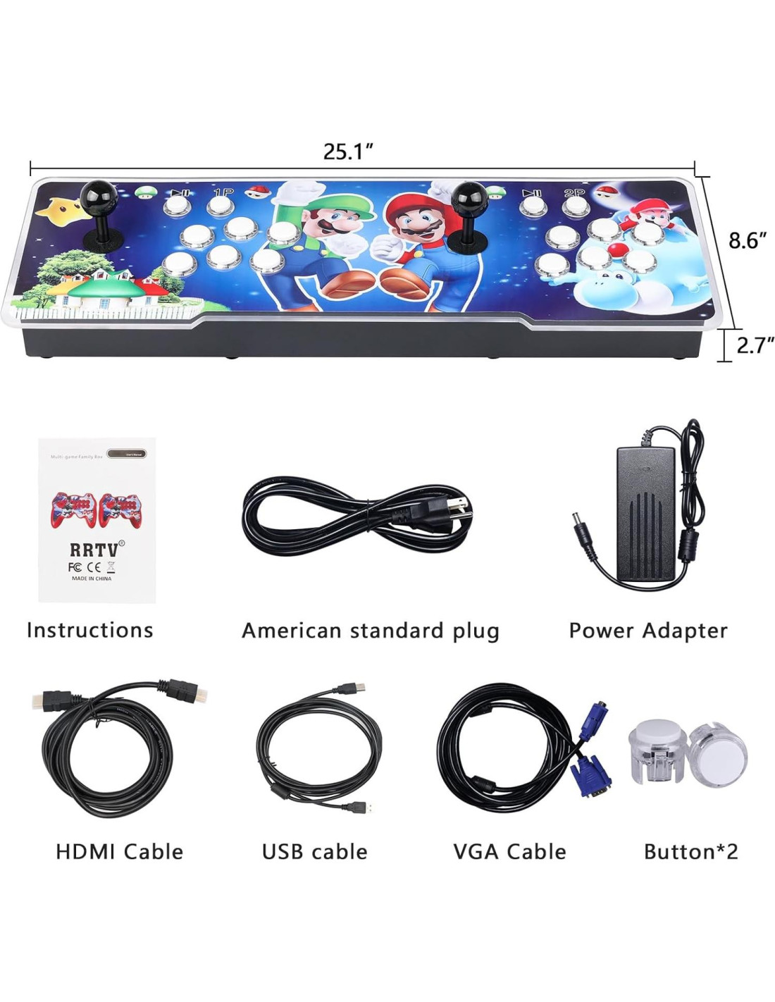 - [Último sistema 50S] : El último sistema es diferente de la operación de 4 núcleos de otros productos en el mercado. Es operación de 8 núcleos, lo que hace que la caja Pandora funcione más rápido y tenga una experiencia de operación más fluida. Algunos juegos solo tienen cuatro botones para usar, por favor no piense que la consola de juegos está rota.