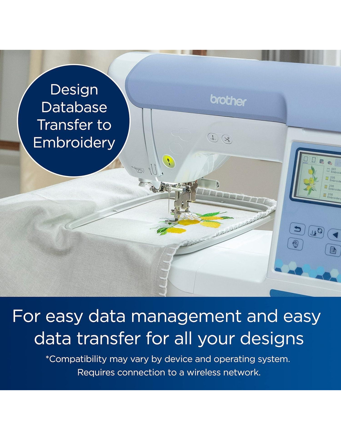 - HABILITADO PARA LAN INALÁMBRICA: Transmite archivos de bordado desde tu PC a tu máquina de bordar a través del software gratuito descargable Design Database Transfer, o conéctate a través del puerto USB incorporado