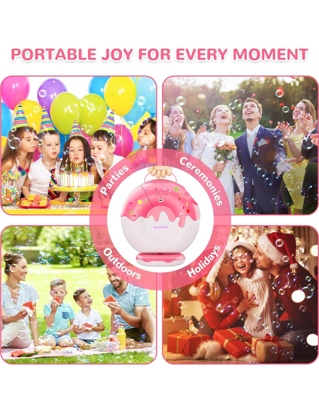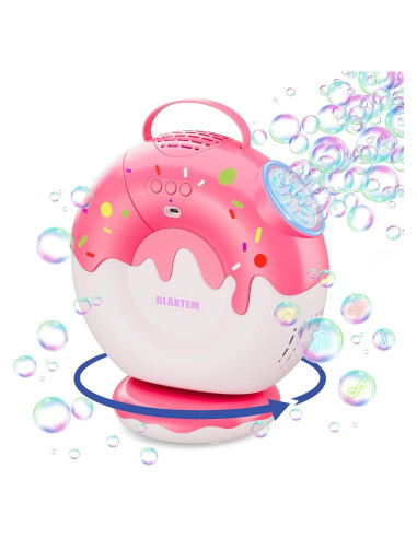- [Diseño de Donut Caprichoso y Modos de Giro Dinámicos]: ¡Esto no es solo un creador de burbujas automático de pie - es un espectáculo mágico con temática de postres! Cambia entre modos de 90, 360 o estacionario para crear espectáculos de burbujas giratorias en fiestas o eventos en el patio trasero. Giros multidireccionales hipnotizantes provocan risas instantáneas