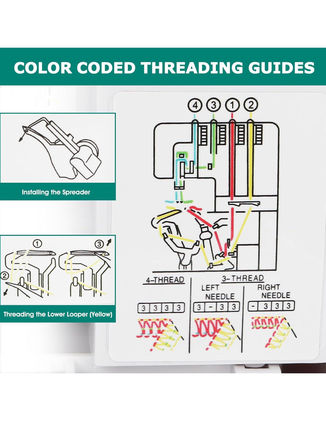 - Capacidad de 2/3/4 Hilos: La máquina serger FEIYUE FY505 está diseñada para manejar una variedad de proyectos de costura con diferentes grosores de hilo, permitiéndole coser con diferentes tipos de telas y crear una variedad de patrones de puntadas