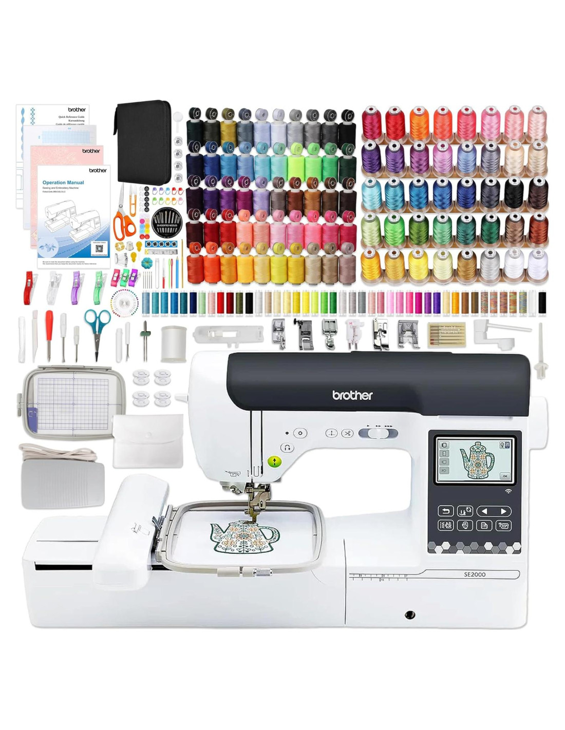 - Máquina de Costura y Bordado Combo: Brother SE2000 5" x 7" Máquina de Costura y Bordado con Kit de Accesorios Deluxe Más 40 Hilos de Bordado de Poliéster de Alta Calidad - 500m Cada uno, 50 Bobinas de Hilo de Poliéster con Bobinas a Juego, y 43 Bobinas de Hilo de Costura de Poliéster de Regalo