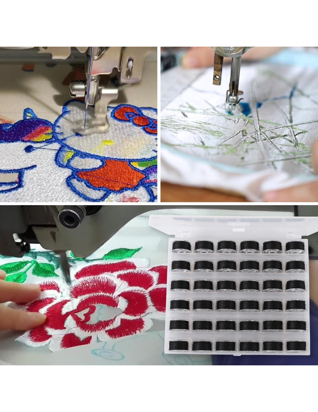 - Conjunto de Bobinas de Máquina de Coser: El conjunto de bobinas e hilos viene con 36 bobinas y hilo negro, que es más que suficiente para tu uso diario.