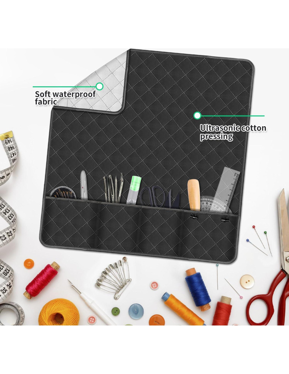 - Tejido de alta calidad La Alfombrilla para Máquina de Coser para Mesa está hecha de tela de poliéster impermeable de alta calidad. Con material plegable, puedes ponerla en tu bolsa de máquina de coser, lo que es fácil de llevar para viajar, clases de costura o usar en casa.