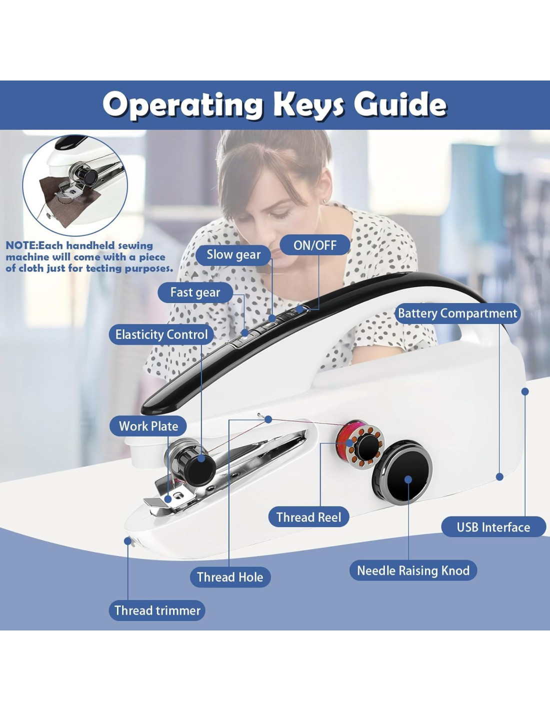 - [Fácil de usar] : Pequeña y conveniente, operación simple con una mano (similar al tamaño de un teléfono móvil). Este producto satisface fácilmente las diferentes necesidades de costura de principiantes y profesionales.