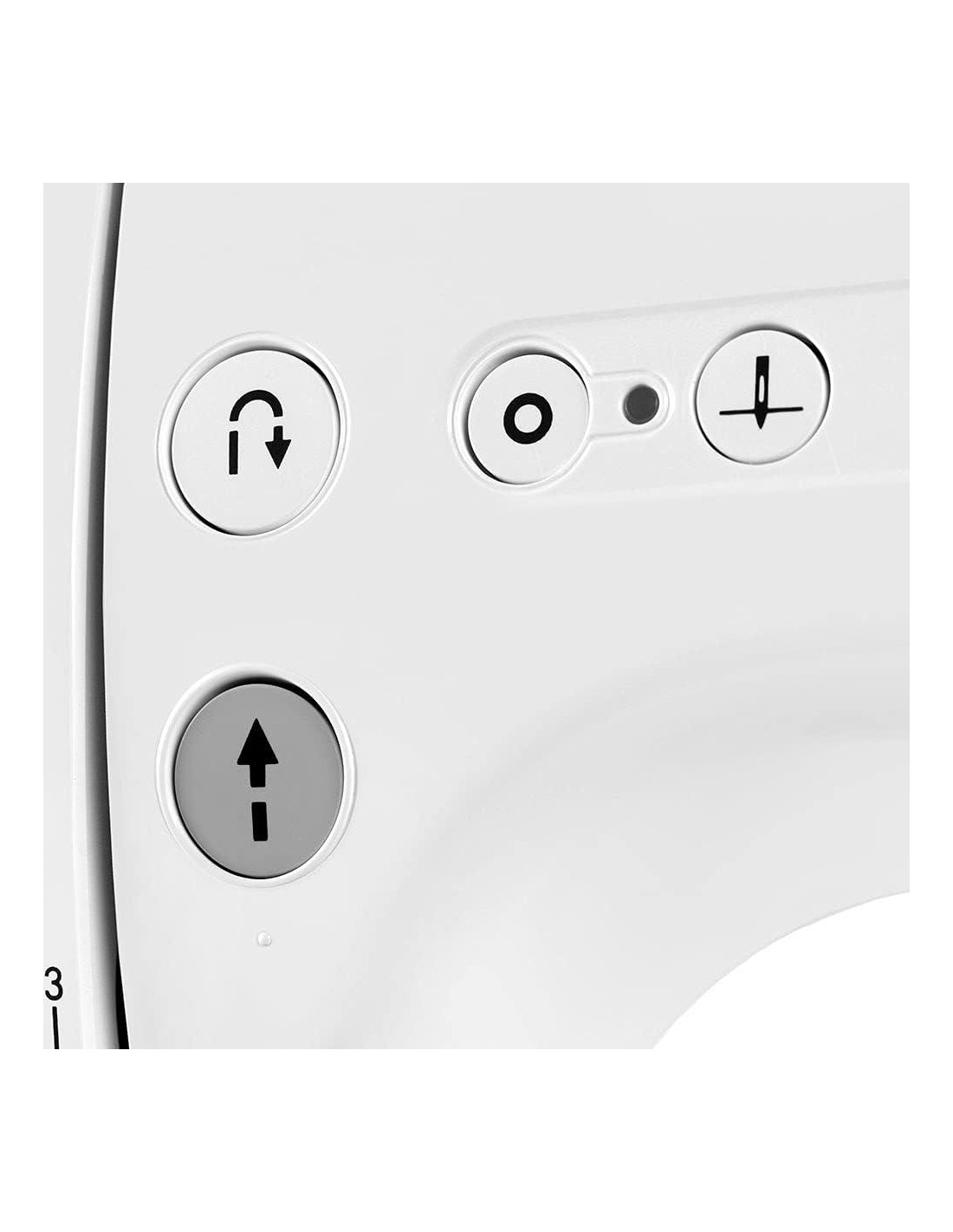 - Sistema Avanzado de Enhebrador de Aguja Incorporado Hace que Enhebrar la Aguja sea Rápido, Confiable y Sin Esfuerzo - Operación Computarizada usa ya sea el botón de Inicio/Parada o el Controlador de Pie