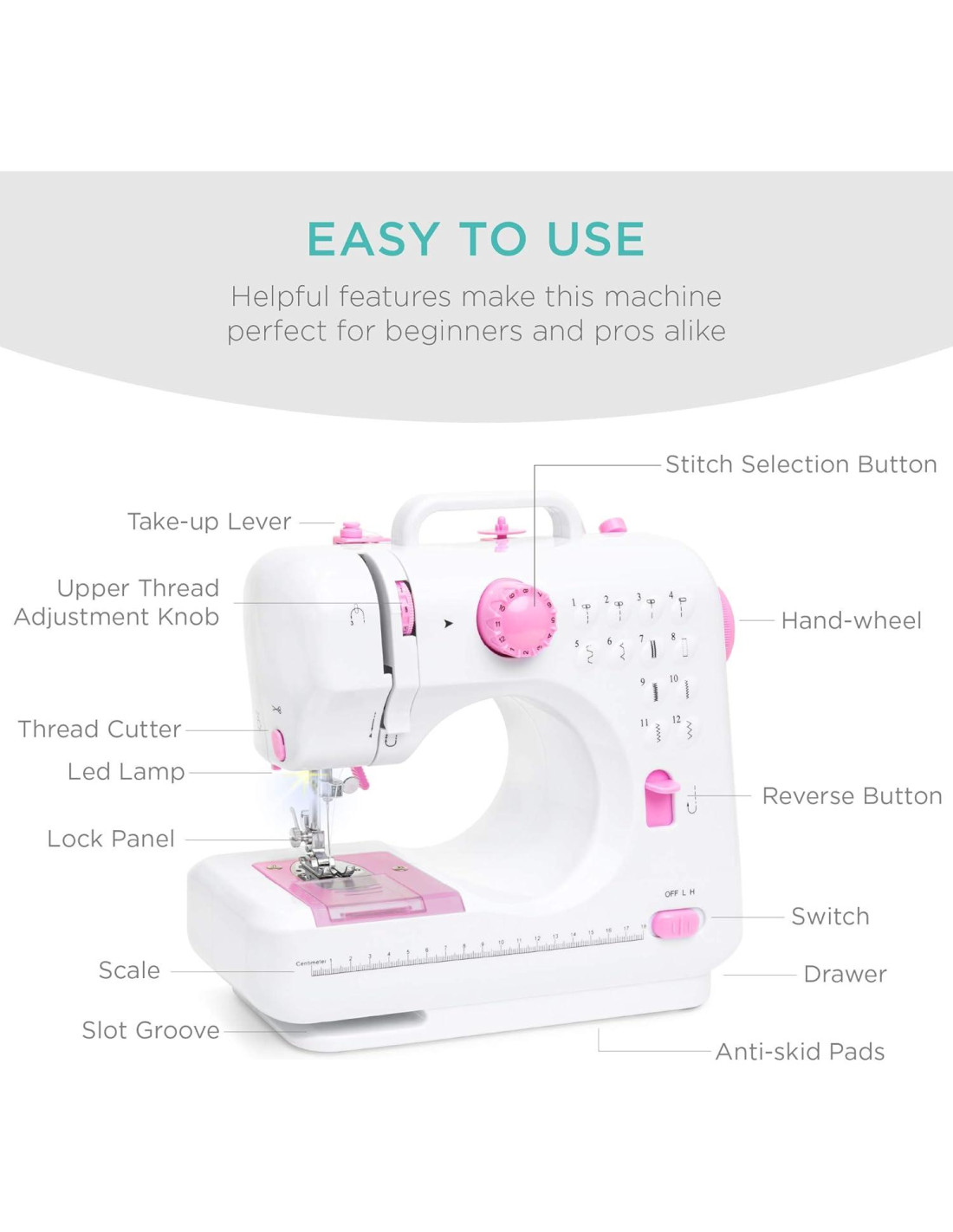 - USO VERSÁTIL: Usa tu máquina de coser para reparar ropa rasgada, o para crear manualidades, mascarillas o ropa desde cero. Incluye un compartimento de almacenamiento para un fácil acceso a hilos y otros suministros