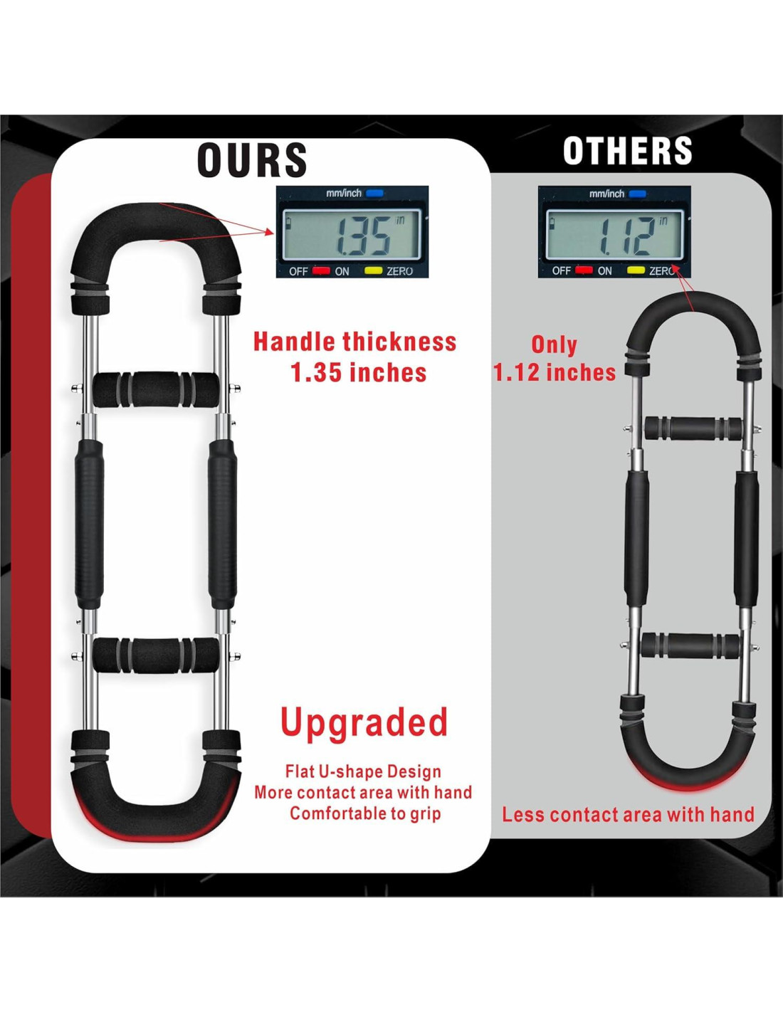 - Equipo de Entrenamiento de Pecho Mejorado: Nuestro dispositivo de entrenamiento de pecho ha sido mejorado con un mango en forma de U plana, con más área de contacto con las manos, lo que ayuda a que agarres el mango de manera más estable y así hacerlo más seguro al ejercitarse. Además, el mango está envuelto con espuma engrosada de hasta 0.37in(0.94cm), antideslizante y anti-sudor, lo que es más cómodo de agarrar.