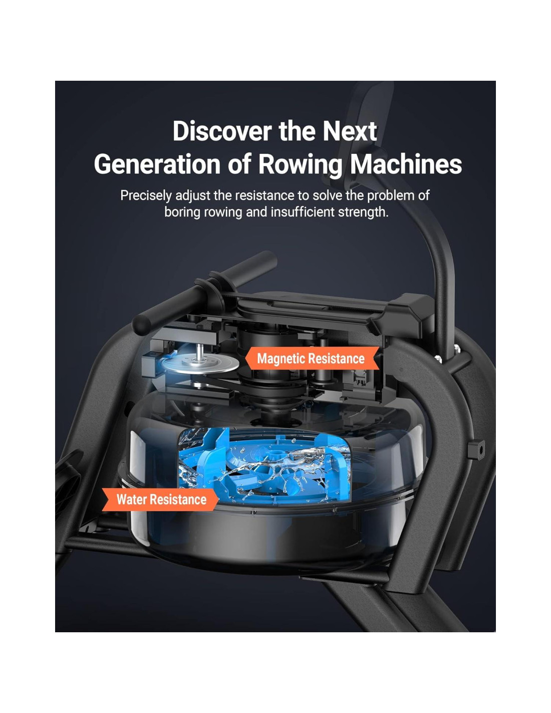 - Experiencia de Remo Profesional: La máquina de remo de resistencia dual de agua y magnética MERACH R06 es una combinación de resistencia magnética y de agua para producir una experiencia de remo profesional que llevará tu rendimiento a nuevos niveles.