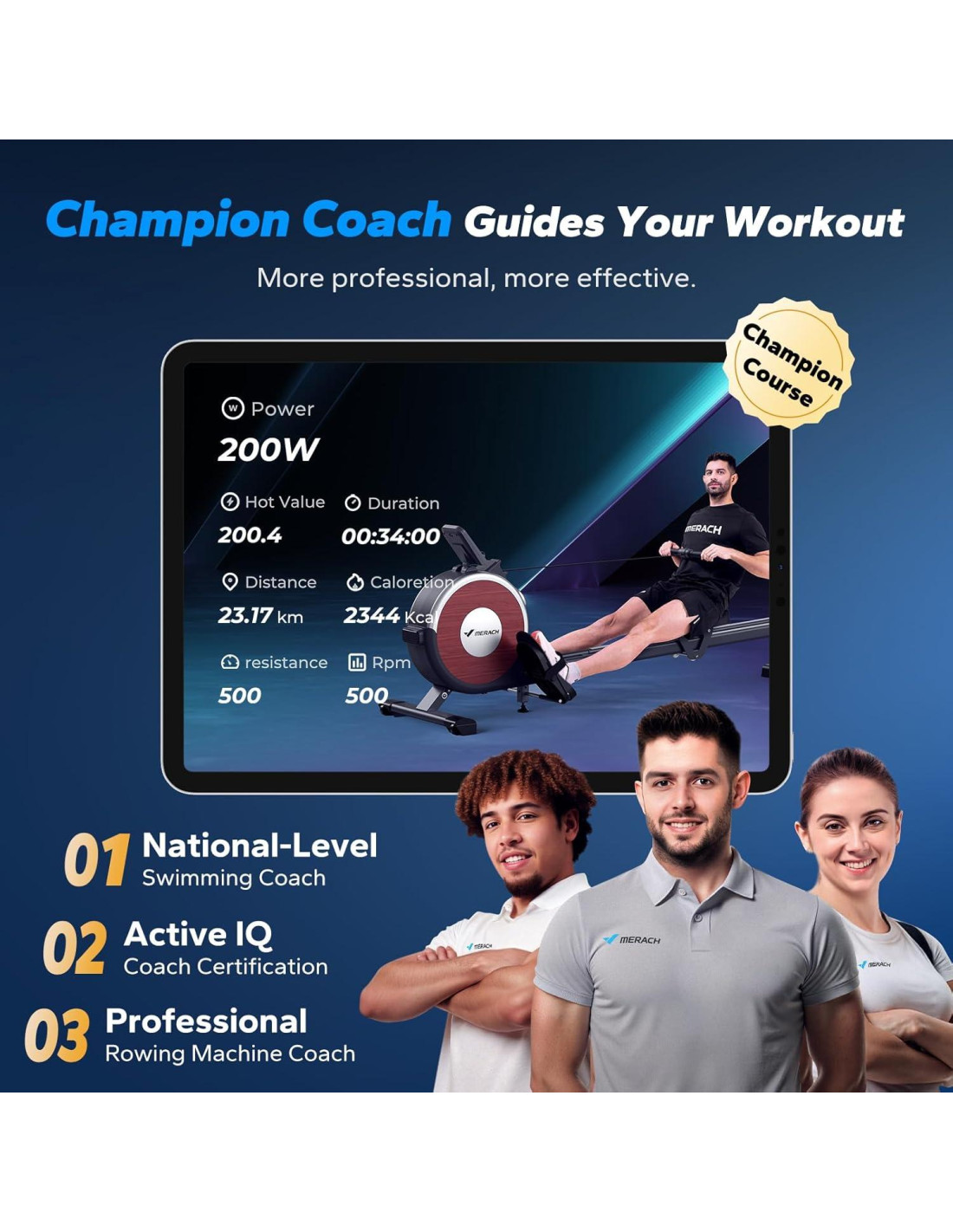 - Control Electrónico Inteligente: Gestiona con precisión 16 niveles de resistencia electromagnética con un simple giro. Tira para comenzar y disfruta del ajuste automático de resistencia a través de la app MERACH, liberando tus manos para un entrenamiento ininterrumpido.