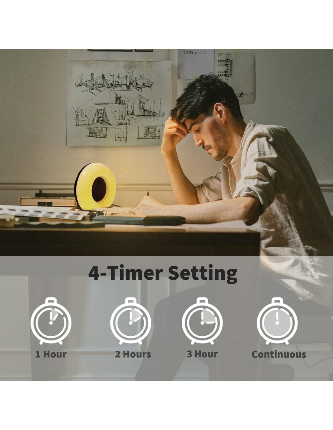 - [4 Temporizadores y Función de Memoria] La máquina de sonido tiene 4 configuraciones de temporizador, puedes establecer 1 hora, 2 horas, 3 horas y reproducción continua según tus necesidades. También recuerda y restaura el sonido y el nivel de volumen de la última reproducción cuando la usas la próxima vez.
