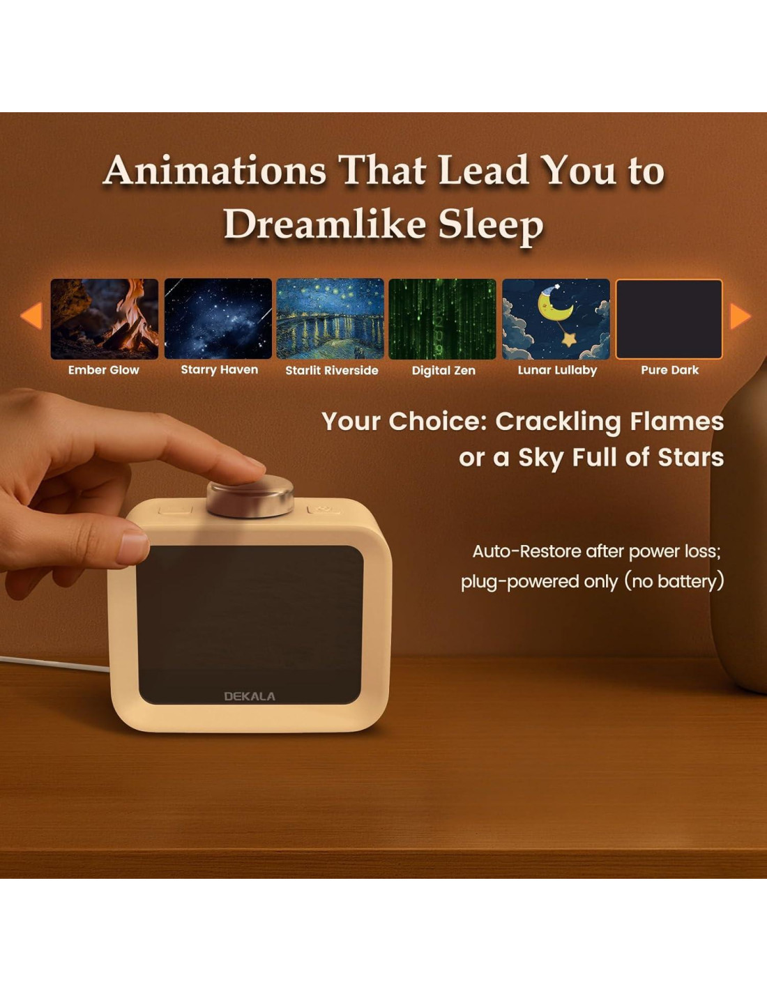 - Crea un ecosistema de sueño saludable. Construye un santuario de sueño sin pantallas con el ecosistema todo en uno de Dekala - sin desplazamiento, solo toca para reproducir más de 30 sonidos ajustados en laboratorio (ruido blanco/marrón/rosa) sincronizados con animaciones de sueño dinámicas (fogata, estrellas), añadiendo 5 minutos al temporizador infinito, personaliza la duración de la reproducción o déjalo funcionar toda la noche.
