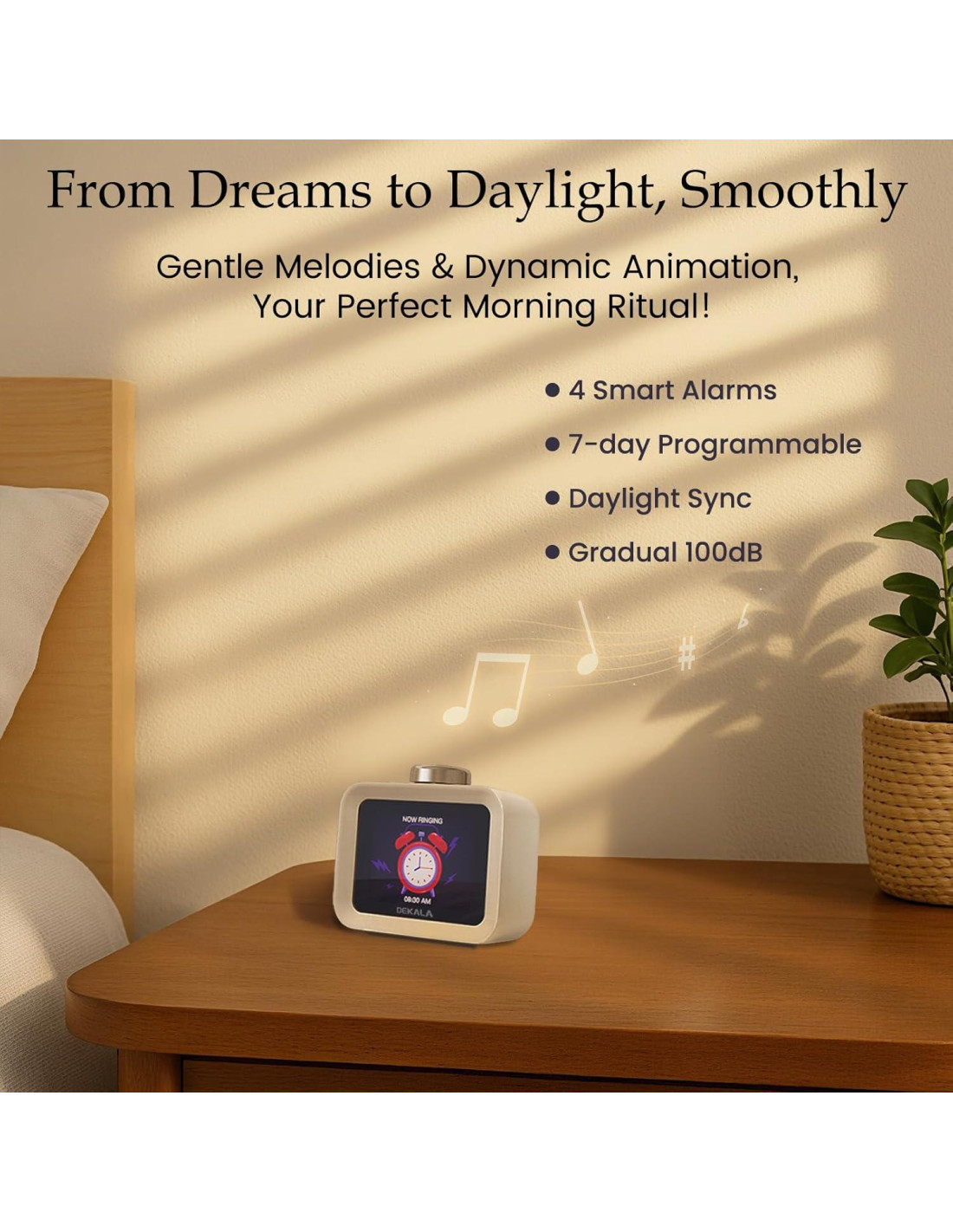- Despierta naturalmente renovado, no aturdido. Despierta a tiempo, incluso si eres un dormilón. 4 alarmas personalizadas programadas para días de semana, fines de semana o programables de 7 días para ocasiones especiales. Cada alarma tiene un tono distinto y volumen ajustable de hasta 98dB, asegurando que nunca te pierdas un día importante.