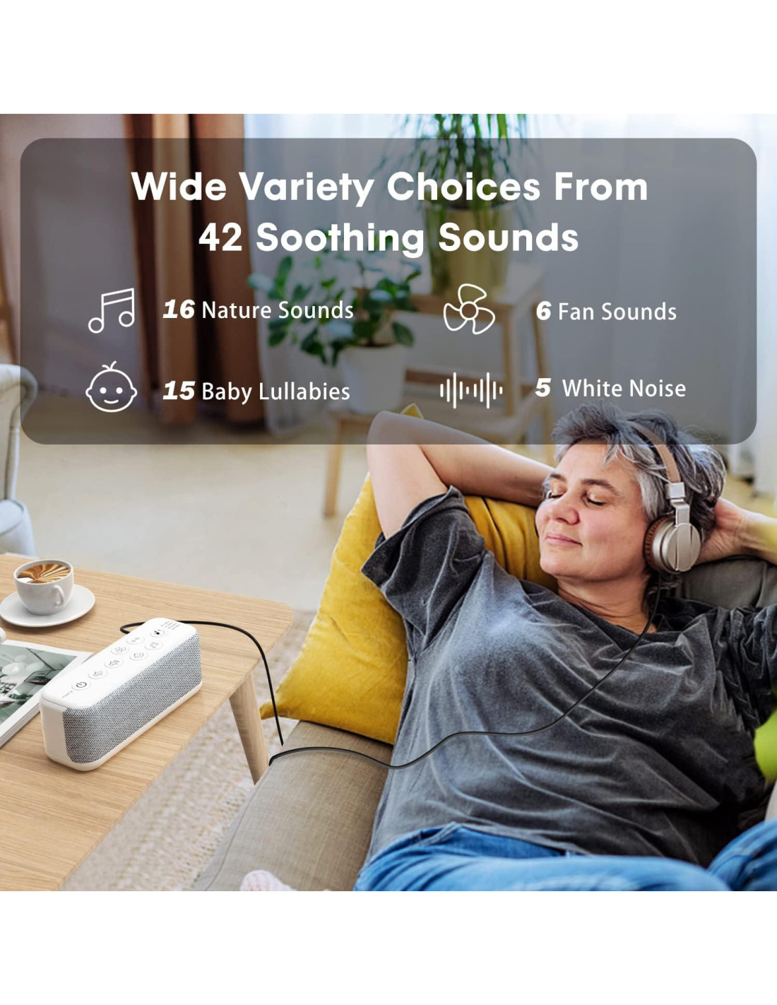 - Máquina de Sonido Portátil para Viajes Midiendo aproximadamente 19.81 centímetros de ancho y 6.60 centímetros de profundidad, esta máquina de sonido para dormir ocupa poco espacio en una mesita de noche, y es lo suficientemente pequeña como para caber en tu equipaje cuando viajas. Hay un conector para auriculares que puedes usar sin molestar a los demás, lo que también la convierte en una máquina de ruido portátil perfecta para la privacidad en la oficina.