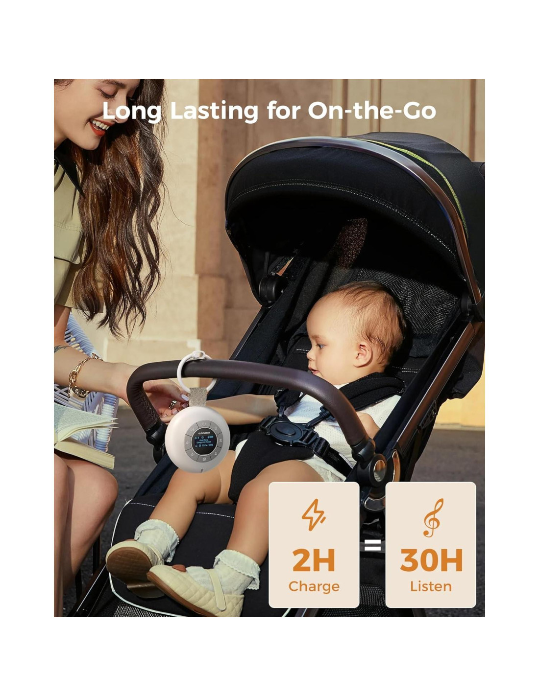 18 canciones de cuna y una variedad de sonidos de la naturaleza enmascaran ruidos externos y ayudan a que tu bebé duerma más tiempo. Elige entre 62 sonidos relajantes que no se repiten, incluyendo música alegre, canciones de cuna y sonidos de la naturaleza. Duerme más fácil y más tiempo con esta máquina de sonido de ruido blanco. Configura el temporizador para 30/60/90/120 minutos según sea necesario y disfruta de tu siesta. No es necesario apagarlo manualmente. El bloqueo para niños previene cambios accidentales en la configuración - ¡Tranquilidad para los Padres! Guarda tu sonido favorito como una configuración personalizada de un toque, perfecto para esos momentos difíciles cuando tu bebé necesita consuelo inmediato. Ya sea una alimentación a las 2 a.m. o un llanto en el automóvil, calma a tu bebé con solo un toque. Reproduce fácilmente tu música, pódcast o audiolibros favoritos directamente desde tu teléfono inteligente.