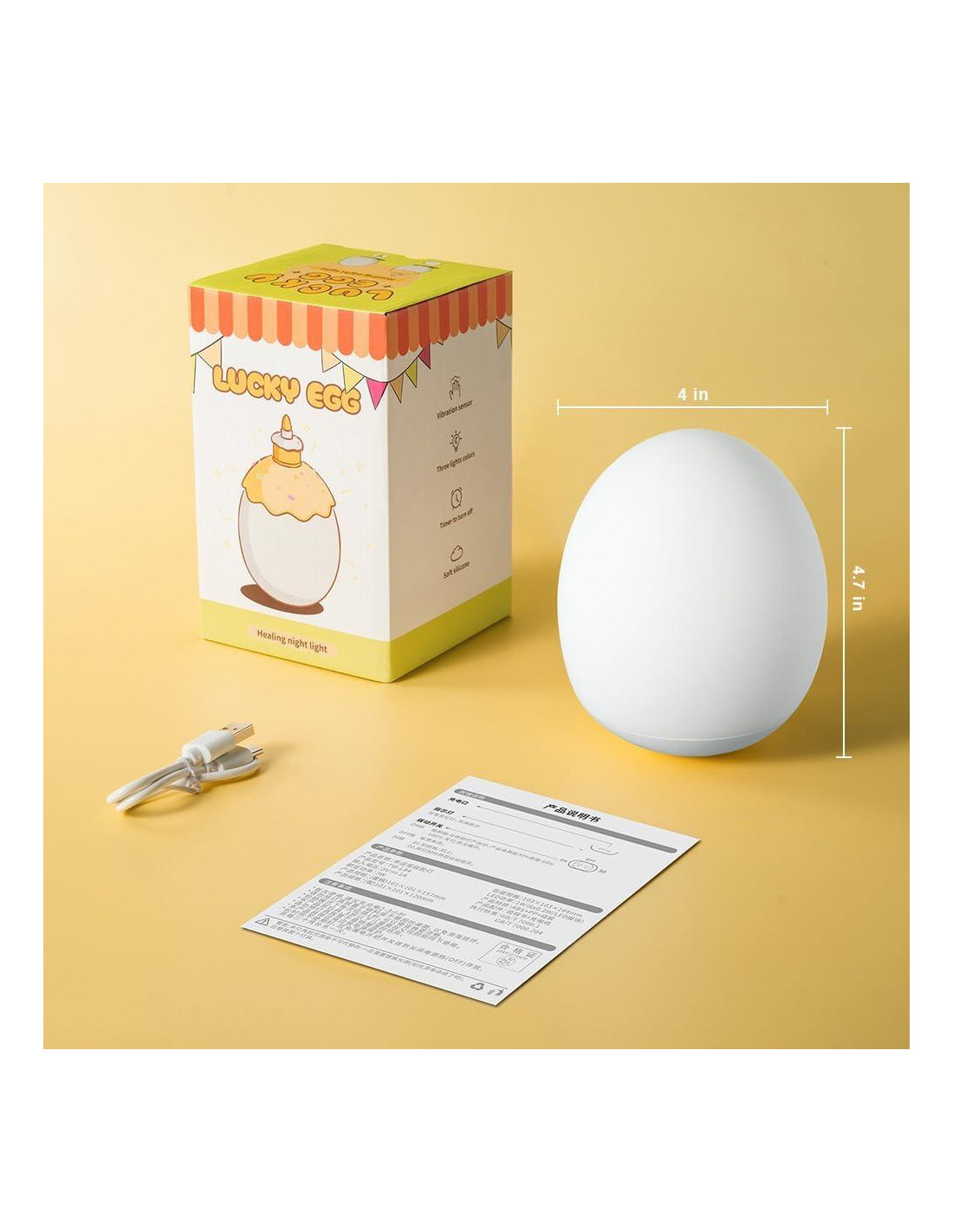 : La luz nocturna recargable para la guardería de bebés ha sido probada cientos de veces para una forma perfecta; la luz nocturna en forma de huevo adopta la mejor silicona de calidad libre de BPA, todo para ofrecer una sensación suave y cómoda al sostenerla y garantizar un 100% de seguridad para tu bebé.