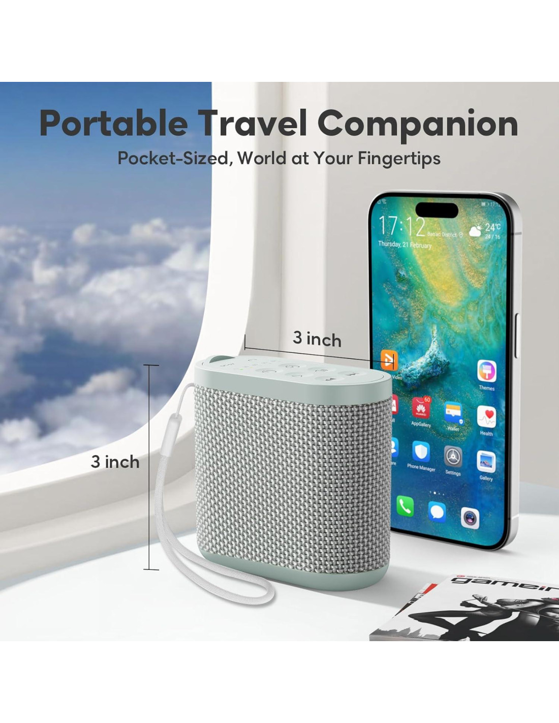 - Viaja Sin Preocupaciones con Larga Duración de Batería: ¡No más ansiedad por la batería! Con una potente batería de 1200mAh, esta máquina de sonido dura hasta 52 horas (voz media) con una sola carga, más del doble de lo que ofrecen la mayoría de las demás. Además, viene con una batería incorporada y un cable de carga USB-C, por lo que no necesitas comprar extras.