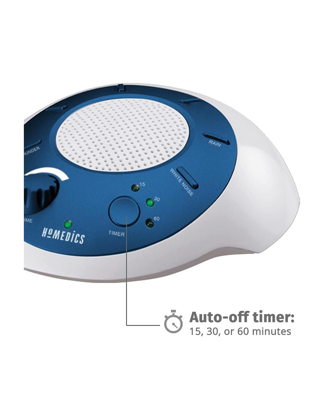 - Máquina de Sonido de Ruido Blanco: La Máquina de Sonido de Ruido Blanco Homedics incluye 6 sonidos relajantes grabados digitalmente diseñados para imitar el entorno natural: Ruido Blanco, Trueno, Océano, Lluvia, Noche de Verano y Arroyo