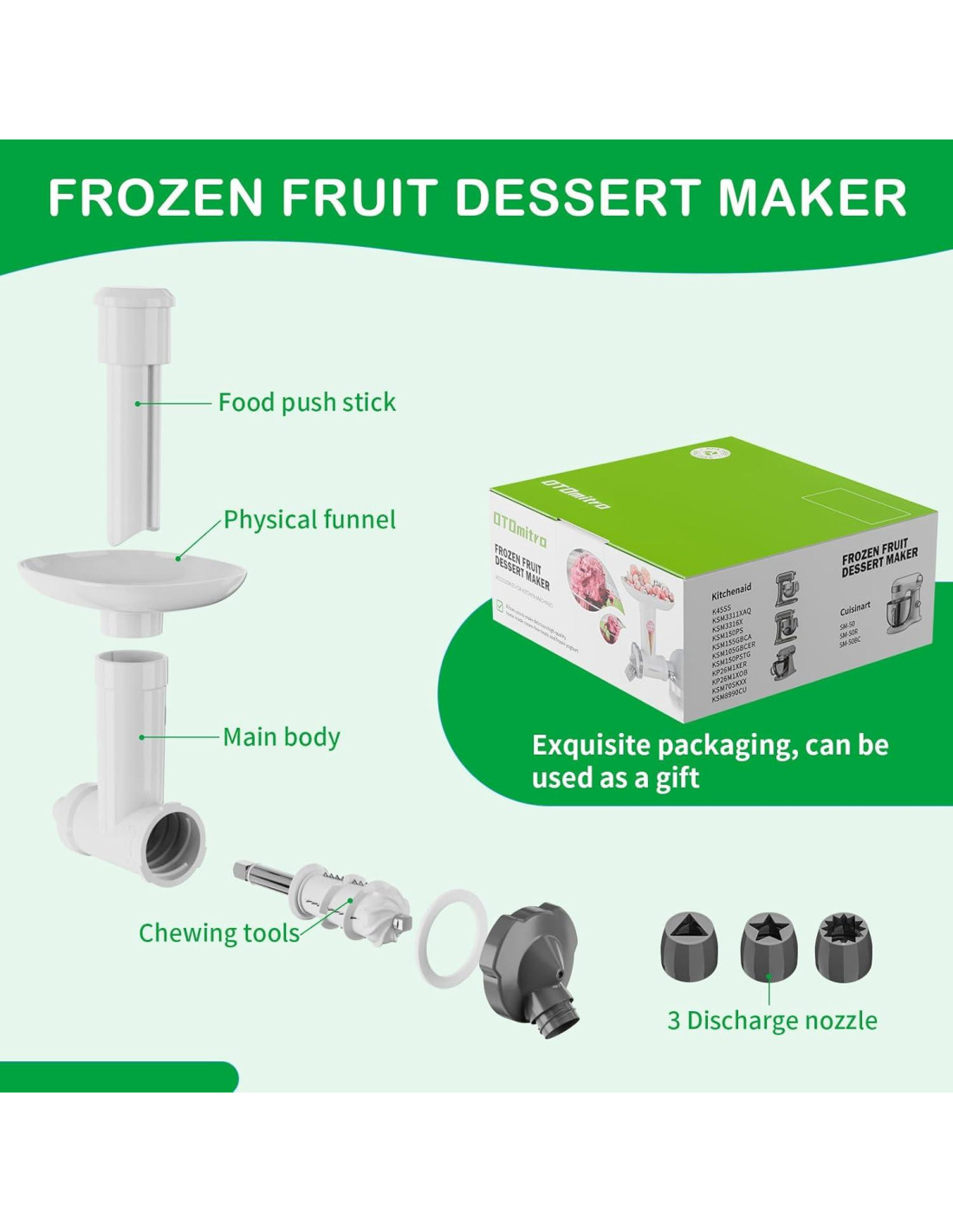 - AMPLIA COMPATIBILIDAD: El hacedor de sorbete de frutas congeladas OTOmitra actualiza tu batidora de pie Kitchenaid a un hacedor de postres (se adapta a todas las batidoras de cabezal basculante). Este hacedor de yogur congelado es el regalo perfecto para los fanáticos de la batidora de pie KitchenAid