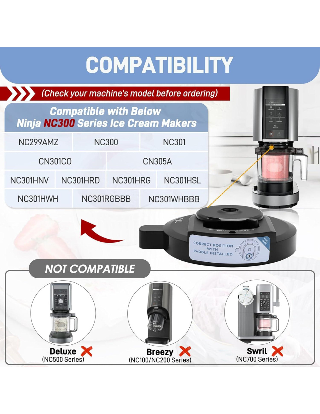 - [ATENCIONES] - 1). NO afirmamos que nuestra tapa de tazón exterior de reemplazo para Ninja Creamy sea original; 2). Esta tapa NO FUNCIONA en Ninja Deluxe (serie NC500), Breeze (serie NC100/NC200) o Swirl (serie NC700) máquinas de helados; 3). SOLO una tapa de tazón exterior está en el paquete, NO incluye el tazón exterior ni la cuchilla de paleta.