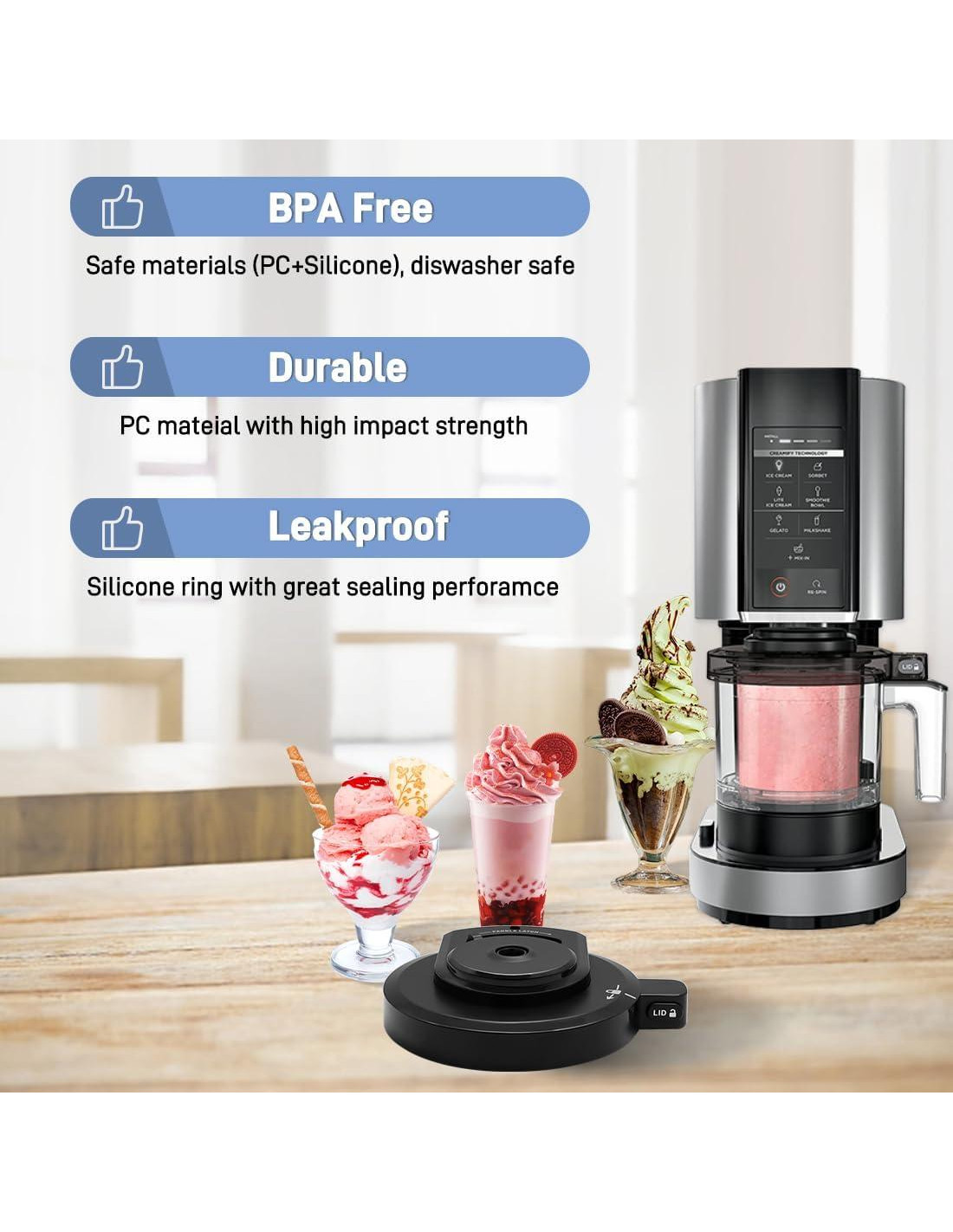 - [MATERIALES DE CALIDAD] - Esta tapa de paleta de repuesto para ninja creami nc300 adopta los mismos materiales que el original, libre de BPA. La tapa está hecha de policarbonato (PC) que tiene alta resistencia al impacto, bastante duradera. El anillo de silicona tiene excelente resiliencia y resistencia al desgaste, ofreciendo un buen rendimiento de sellado.