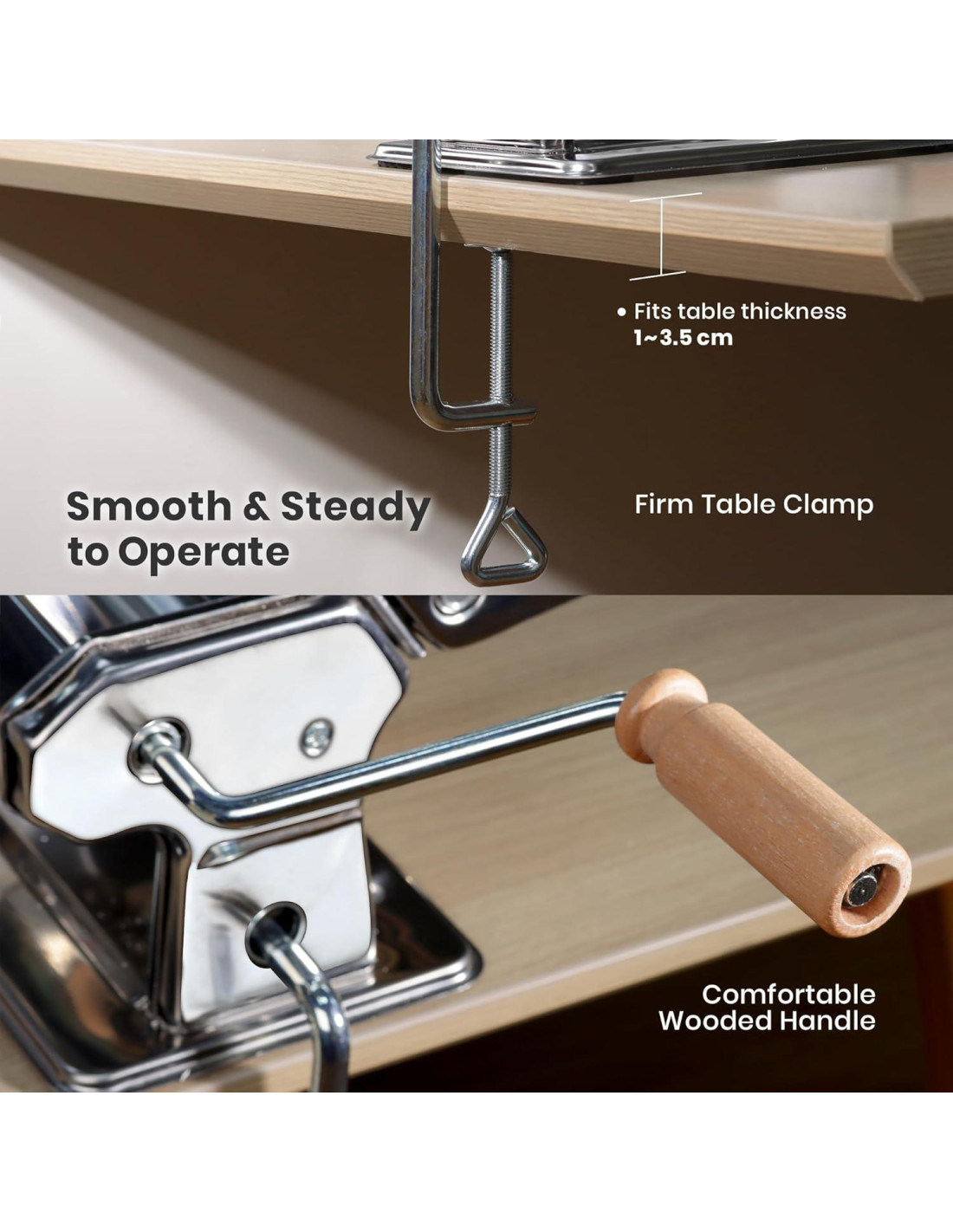 - MATERIAL DE GRADO ALIMENTARIO Y DISEÑO ROBUSTO: Sus rodillos de pasta y cortador de pasta están hechos de aleación de aluminio de alta calidad y no tóxica, garantizando así su seguridad y durabilidad; diseñado de manera innovadora con una abrazadera de mesa robusta, no se moverá cuando esté en uso