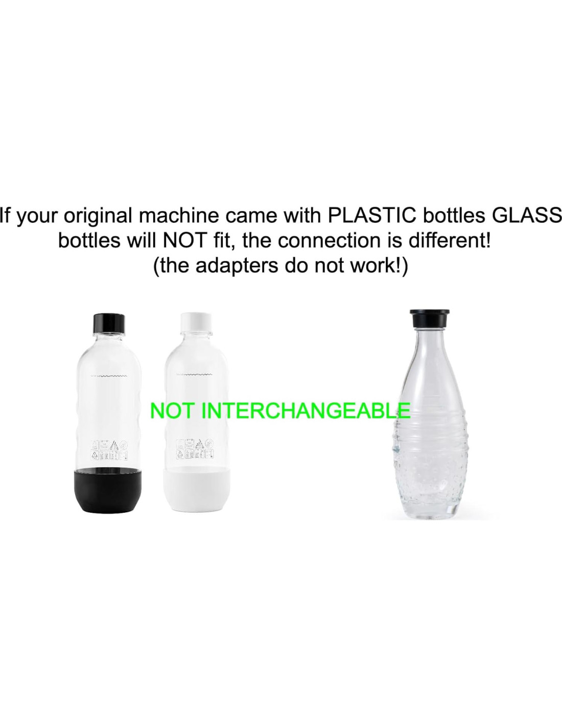 - NO PARA MÁQUINAS DE BOTELLAS DE PLÁSTICO: No compatible con SodaStream Jet, Fizzi, One Touch, Terra o Art, estos requieren un tipo de botella y roscado diferente.