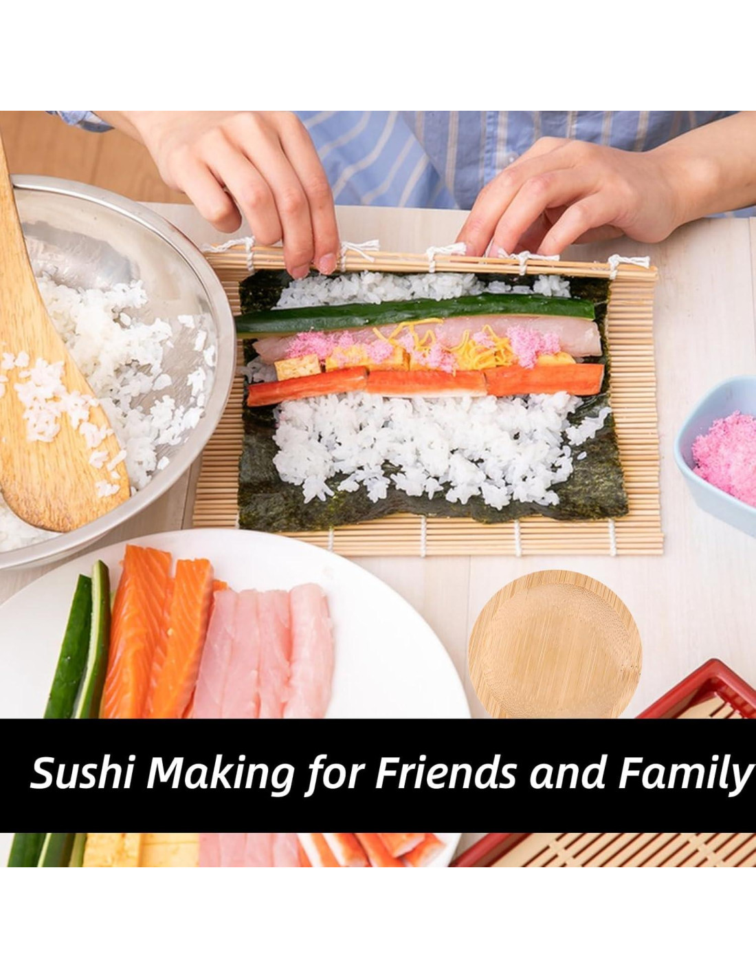 - Material Premium: El kit de sushi está hecho de bambú natural, presenta bordes redondeados y superficies suaves para una preparación de sushi amigable para la familia en casa.