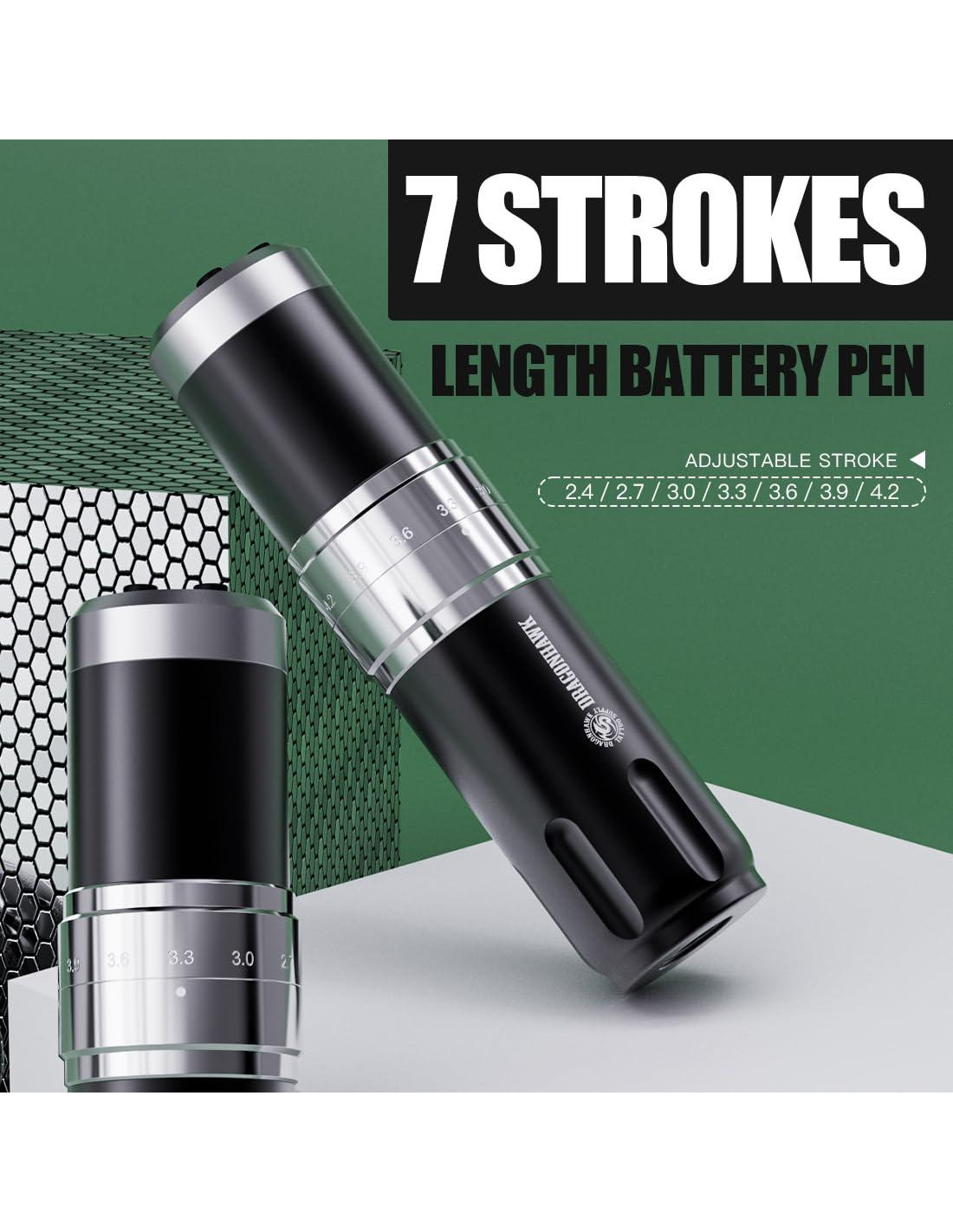 - Golpes Ajustables para Tatuajes Versátiles: Con 7 golpes ajustables que van de 2.4mm a 4.2mm, este kit de máquina de tatuaje ofrece versatilidad para crear diferentes estilos de tatuaje. Puedes cambiar fácilmente la longitud del golpe sobre la marcha simplemente girando la perilla de ajuste, dándote la libertad de personalizar tu arte con precisión.