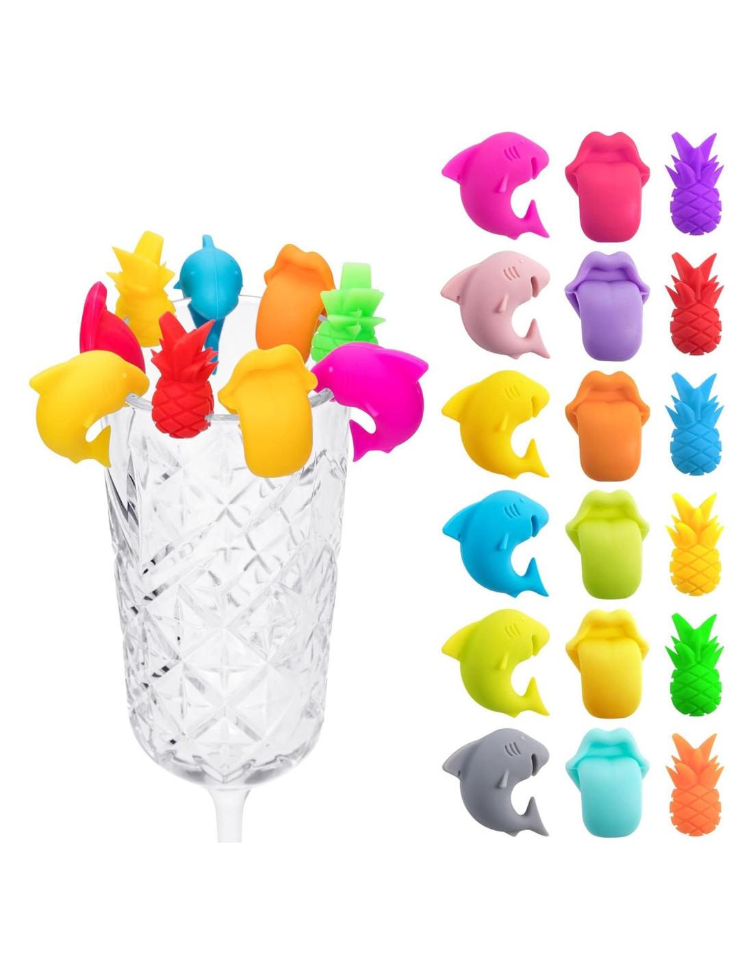 - Marcadores de Copas de Vino: Obtendrás 18 marcadores de copas de vino, incluyendo 6 tiburones, 6 lenguas y 6 piñas, múltiples colores y estilos convenientes para marcar tus bebidas y evitar confusiones.