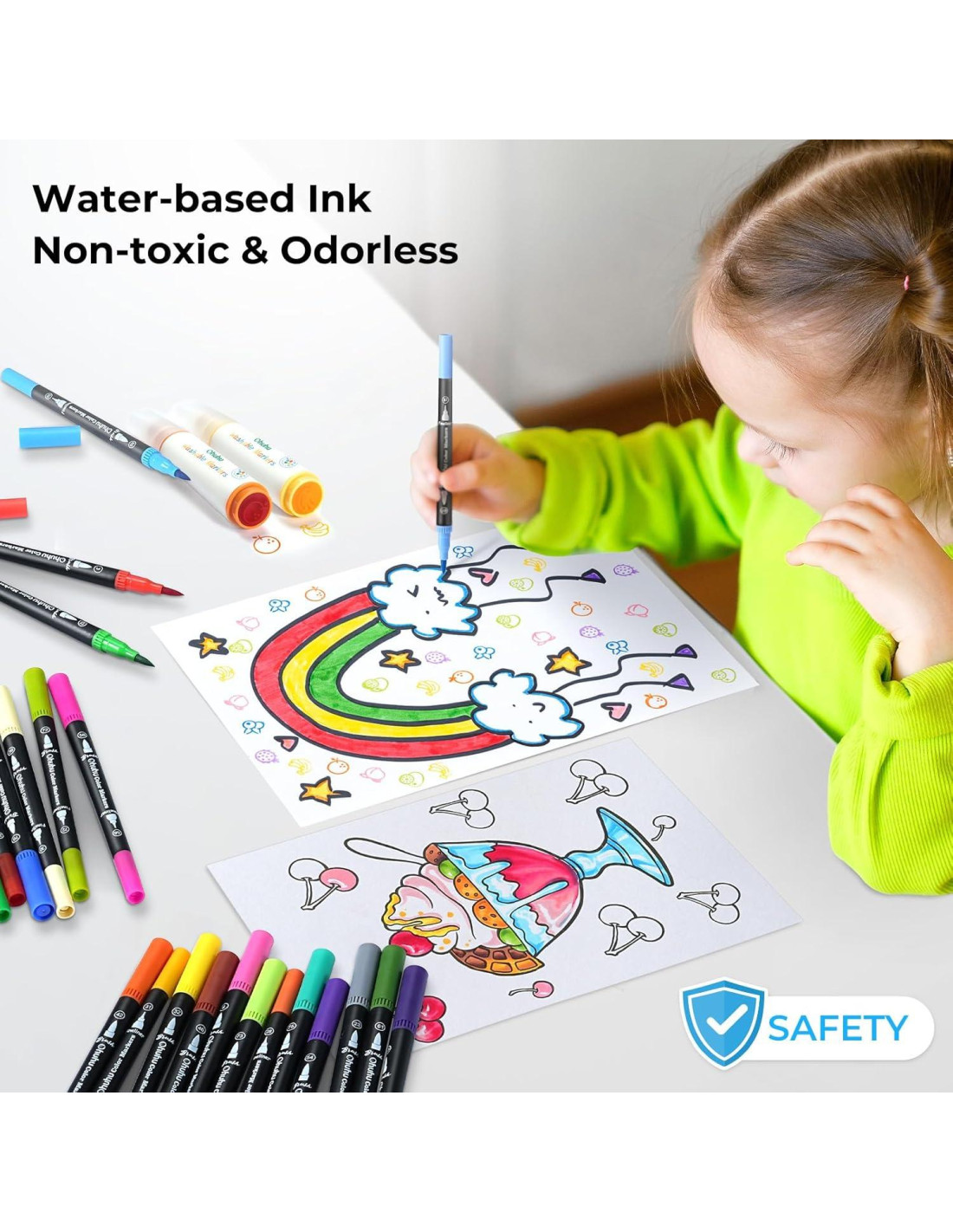 - TINTA A BASE DE AGUA, SIN ÁCIDO Y SIN OLOR: Nuestra tinta a base de agua no tóxica, sin ácido y sin olor asegura un uso seguro y sin complicaciones. En comparación con las tintas a base de alcohol, los lápices de brocha a base de agua de Ohuhu son más fáciles de lavar y limpiar, ahorrándote de tediosas limpiezas.