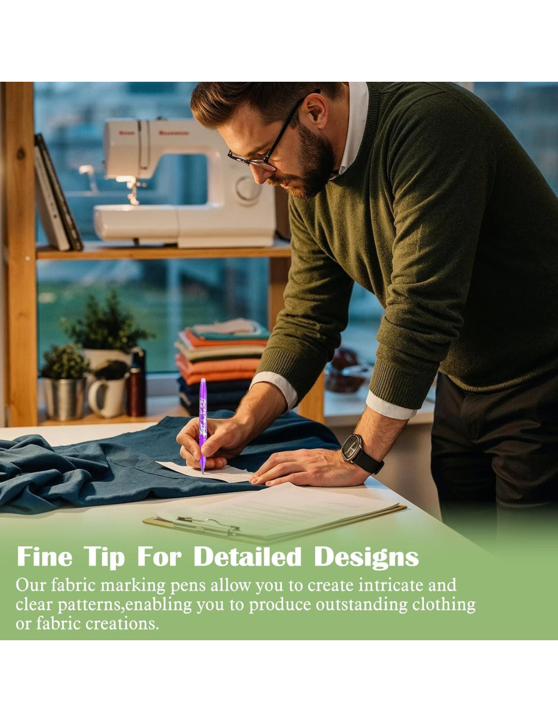 - Marcado claro. Con una punta ultra-fina de 0.5 mm, nuestros bolígrafos de marcado de tela para costura escriben líneas precisas, suaves y claras fácilmente, haciendo que tus telas sean fáciles de medir y cortar.