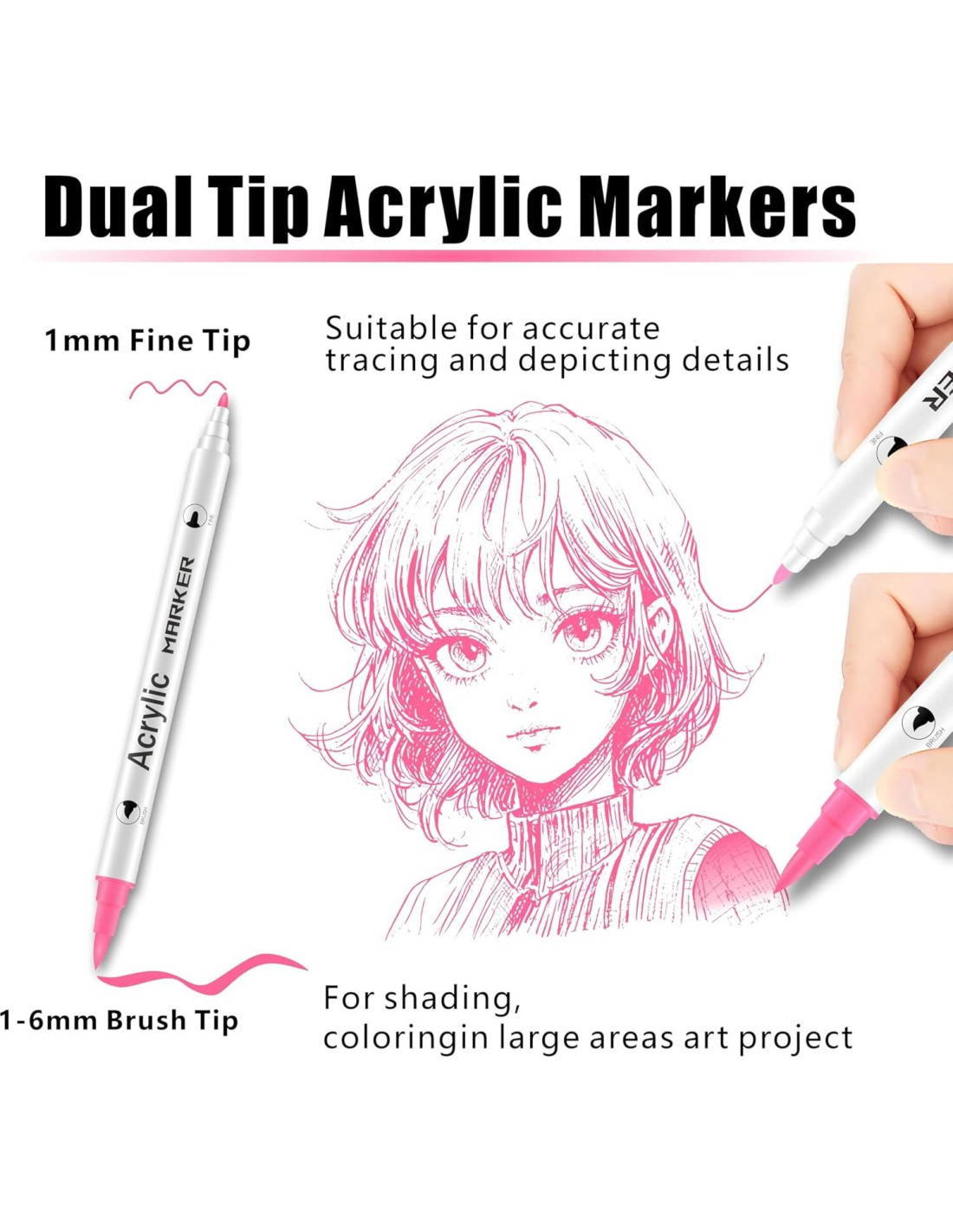 - Diseño de Doble Punta Versátil: Los marcadores de pintura acrílica LILTYNG vienen con un diseño único de doble punta. Punta fina de 1mm para contornos y detalles de diseños intrincados. Punta ancha de 0.5-6mm para áreas grandes de pintura y coloración, al cambiar la presión del pincel para crear diferentes áreas de pintura, brinda más conveniencia y velocidad a tus creaciones. Puede satisfacer simultáneamente las diferentes necesidades de profesionales y aficionados.