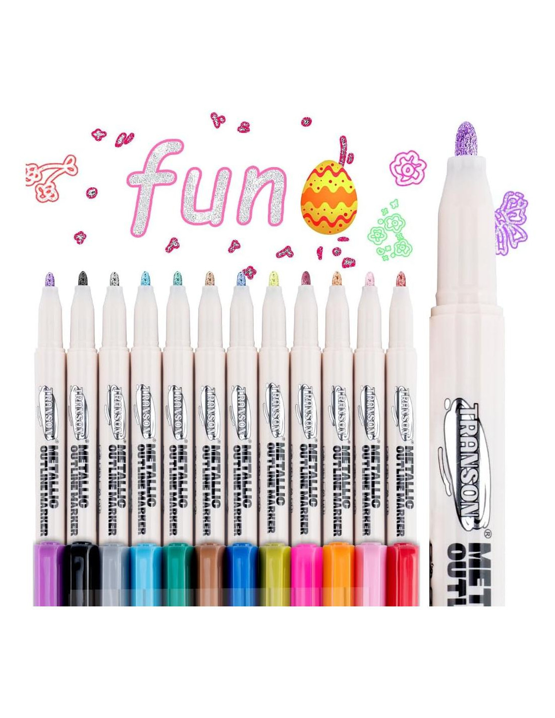 - Estos marcadores de contorno metalizados tienen un diseño especial que crea contornos coloridos con efectos metálicos plateados en papel claro o blanco. Y obtendrás colores plateados en papel oscuro o negro. En superficies brillantes como tazas, vasos, ventanas obtendrás colores vibrantes puros.