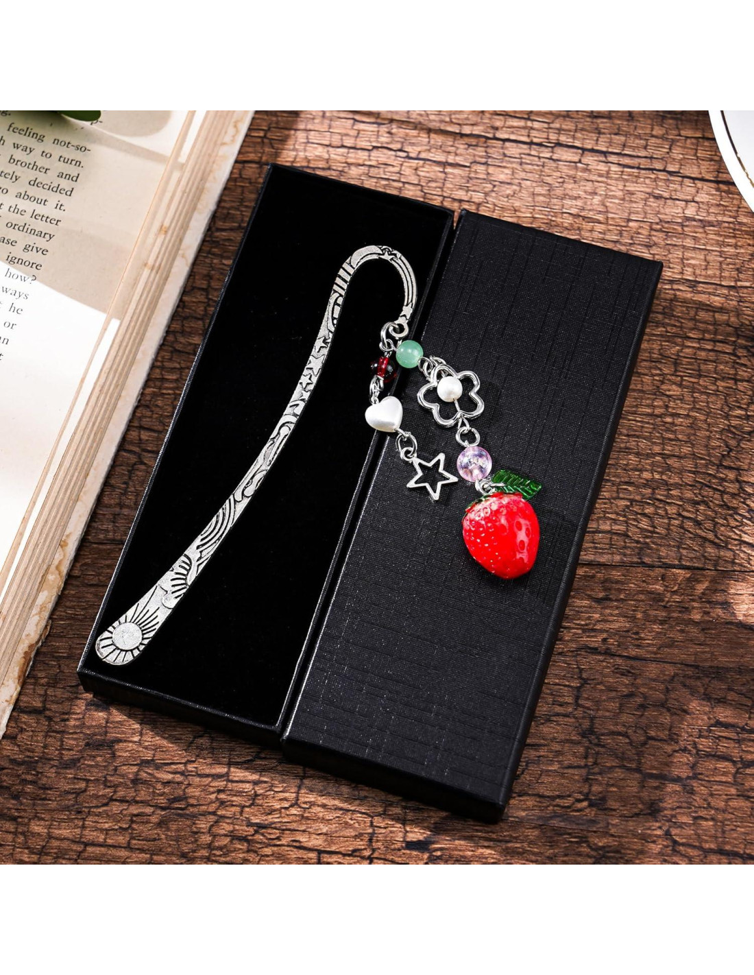 - Lindo Marcador de Fresa: El marcador metálico con colgante de cadena plateada y borlas presenta un diseño de fresa linda, presentado en una caja de regalo premium con tapa superior e inferior, el marcador está listo para regalar directamente de la caja. Regalos encantadores para estudiantes y profesores, regalo de marcador para fanáticos de las fresas y amantes de la estética, regalos de Navidad para mujeres y niñas, regalos de cumpleaños para amigos amantes de los libros y lectores.