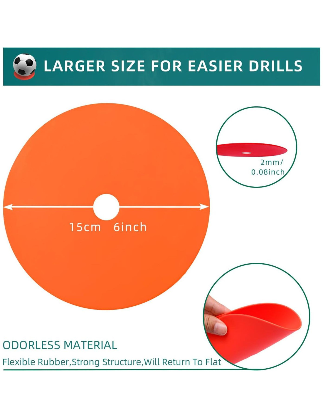 - DIÁMETRO DE 6 PULGADAS: Hay seis colores diferentes, rojo, amarillo, naranja, verde y azul. Tamaño: 6 pulgadas (15 cm); Cantidad: 20 piezas. El marcador de punto de poli de LZKIB viene con una bolsa de almacenamiento portátil para fácil colocación y transporte.