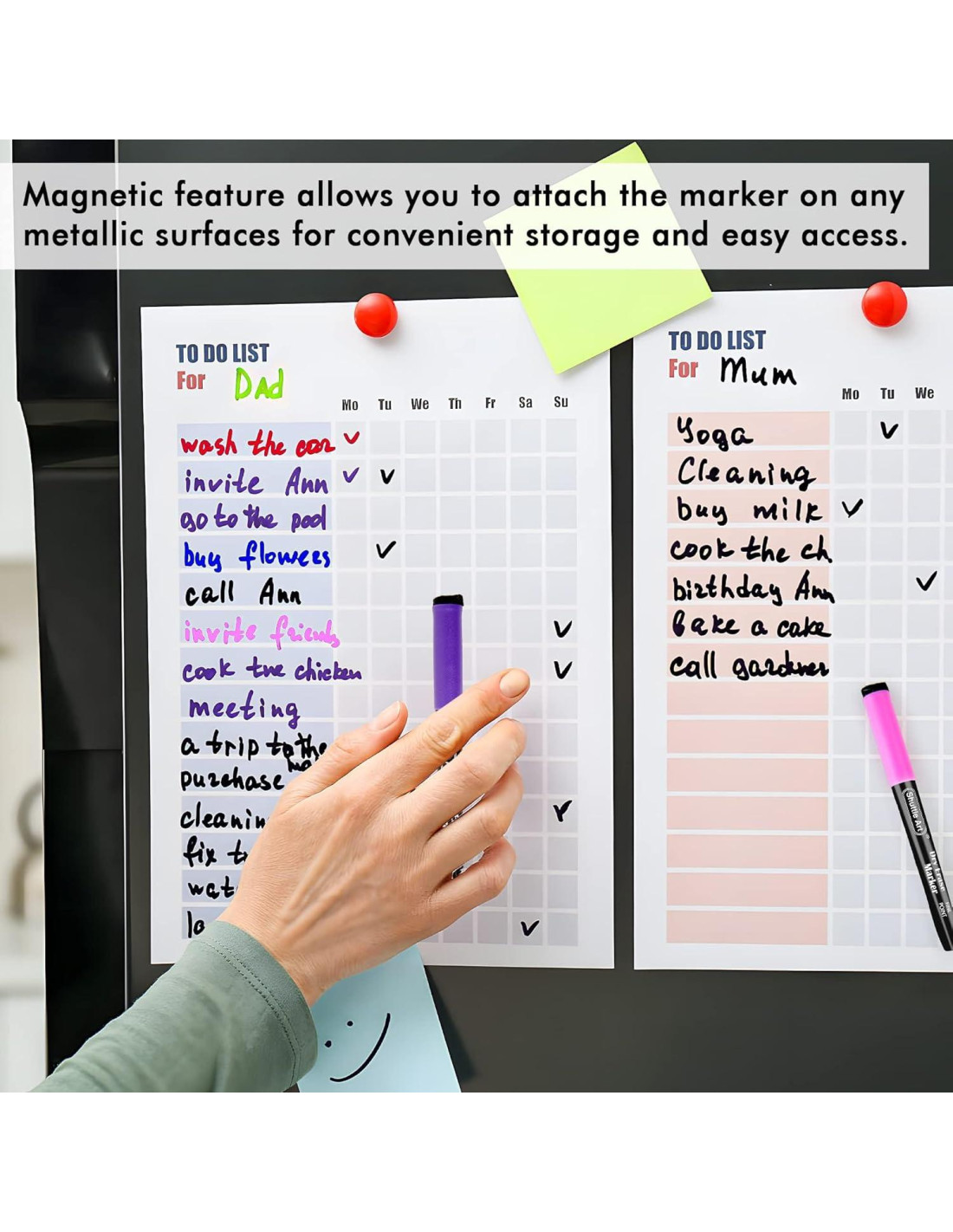 - TAPA MAGNÉTICA Y BORRADOR: Tapas de marcadores magnéticos con borradores de fieltro incorporados, puedes pegarlos en cualquier superficie magnética donde solo necesites quitarlos y escribir. ¡Nunca perderás un marcador de borrado en seco nuevamente! Las puntas de borrador en la tapa de cada marcador pueden hacer correcciones rápidas y limpiar, lo que te ayuda a decir adiós al desorden.