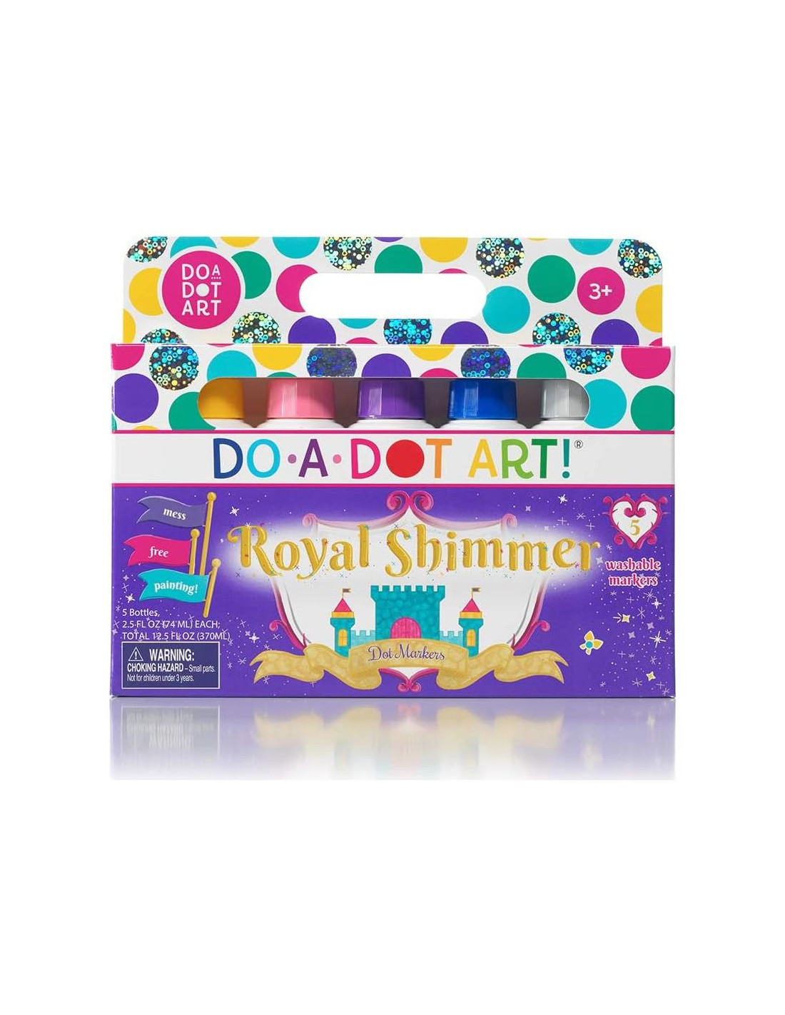 Las artes y manualidades se han vuelto más fáciles y limpias con Do A Dot Art! El Marcador Original. El set Brillante de Do A Dot Art! viene con 5 marcadores LAVABLES: Morado, Amarillo, Rosa, Azul y Plata. Cada marcador tiene una gran punta de esponja que nunca se seca y hace un punto perfecto cada vez. Los marcadores Do A Dot Art! tienen pigmentos audaces y colores brillantes que secan rápido. Perfectos para superponer, mezclar y combinar colores. Los marcadores Do A Dot Art! son increíblemente beneficiosos para enseñar a los niños pequeños los beneficios del aprendizaje por capas. Son el medio artístico perfecto para aquellos que buscan artes y manualidades que despierten la creatividad e inspiren un juego abierto y no guionado. ¡Ven a ver por qué Do A Dot Art! es el medio artístico número uno utilizado en jardines de infancia y escuelas primarias de todo el mundo! Do A Dot Art! Donde la Imaginación Comienza con un Pequeño Punto. Durante los últimos 24 años, niños de todo el mundo han estado haciendo puntos con Do A Dot Art! Do A Dot Art! se ha convertido en un producto artístico básico en hogares y jardines de infancia en todo el mundo. A los padres y maestros les encanta que sea tan fácil para sus hijos crear obras de arte divertidas e imaginativas, con posibilidades ilimitadas, simplemente girando la tapa y dejando que la imaginación vuele. Do A Dot Art! está diseñado y fabricado en los EE. UU. utilizando solo los materiales y estándares de la más alta calidad. Descansa tranquilo sabiendo que tus hijos están usando productos de calidad fabricados en nuestra propia fábrica y empaquetados con amor y cuidado. Todos los marcadores Do A Dot Art! son libres de gluten y látex.