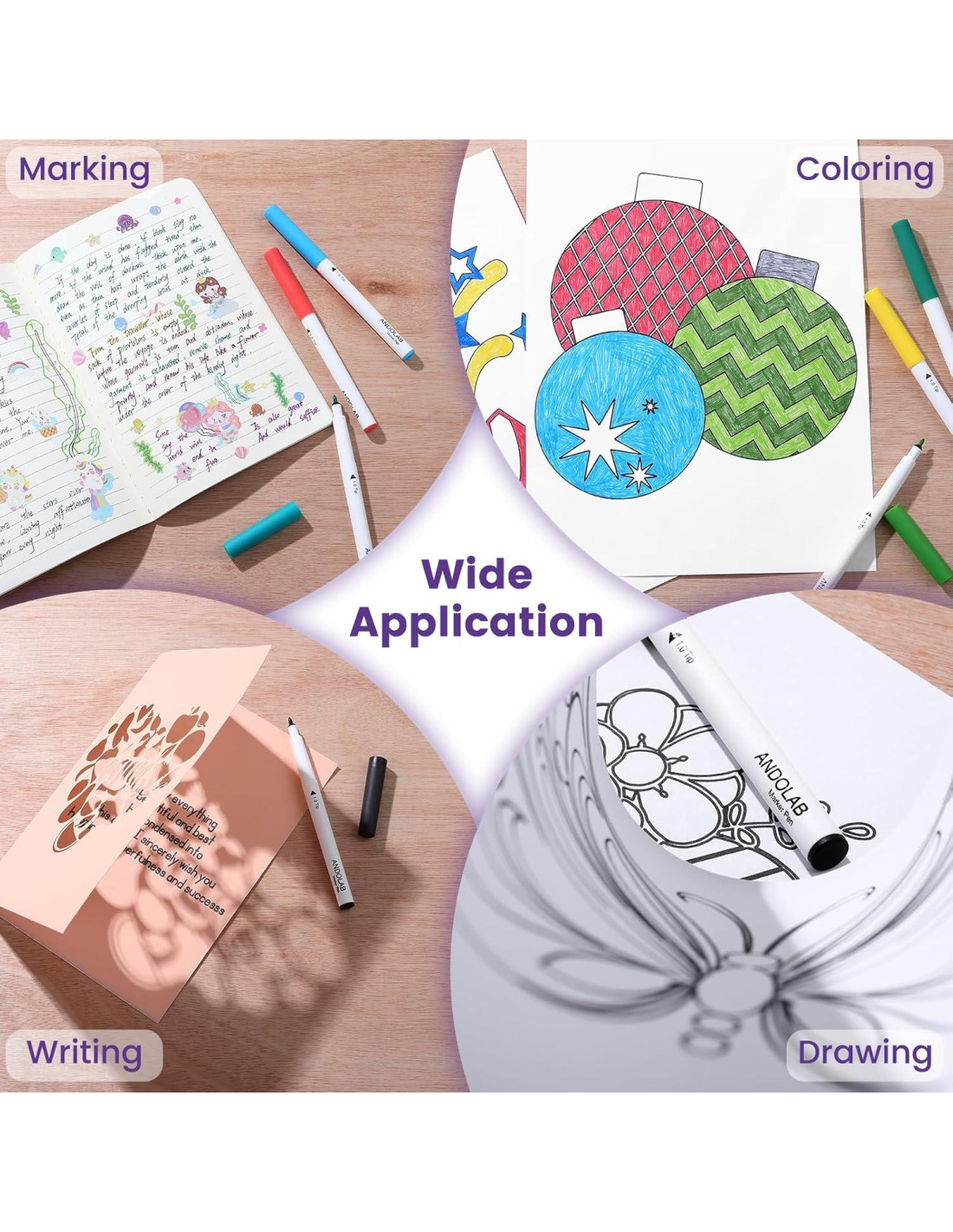 - Los marcadores de punta 1.0 de ANDOLAB incluyen 30 colores de opciones únicas y brillantes para elegir, los marcadores de punta 1.0 asegurarán que cualquier cosa que dibujes y escribas perdure en el tiempo sin perder sus colores vibrantes.