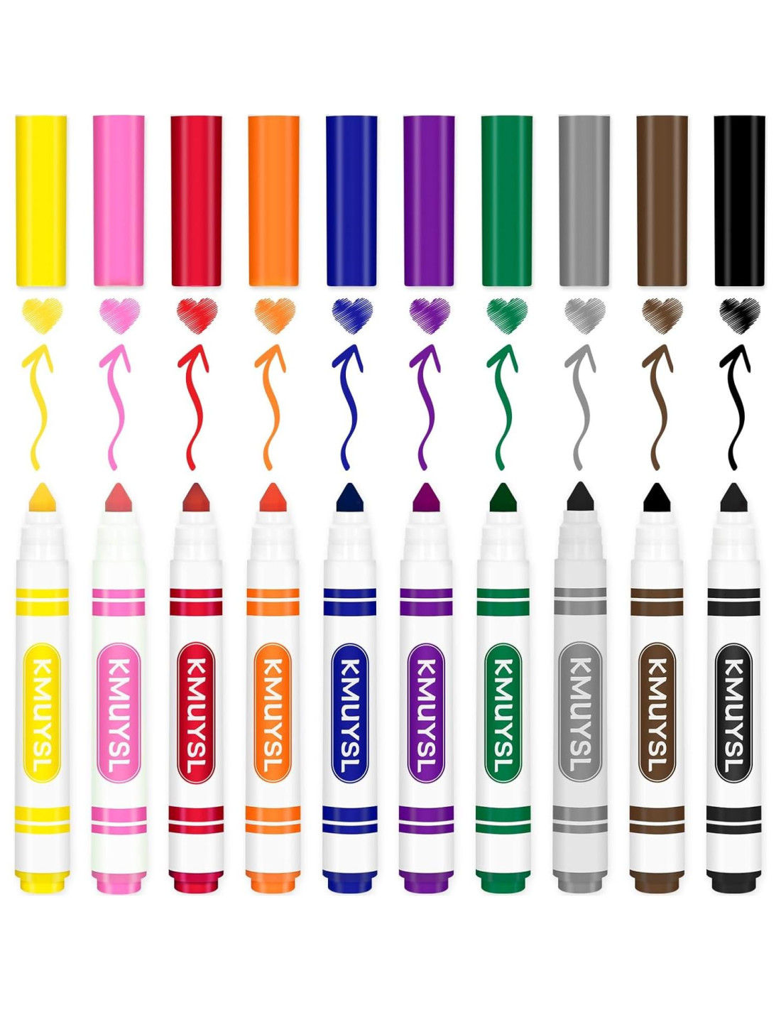 - Marcadores Lavables: El pigmento del marcador puede ser lavable. Si la pintura mancha tus manos, puedes enjuagarlas fácilmente con agua. Aviso: El marcador lavable no es adecuado para su uso en la pizarra blanca. No se borra fácilmente en la pizarra blanca, pero se puede limpiar con una toalla de papel húmeda.