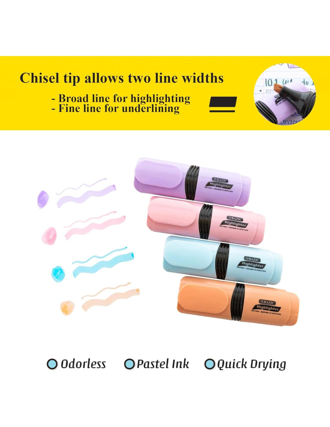 - PUNTA CHAFLÁN VERSÁTIL. Con un diseño de punta chaflán, estos marcadores fluorescentes ofrecen versatilidad. Ya sea que desees subrayar información importante o resaltar oraciones completas, hazlo todo con la punta chaflán.