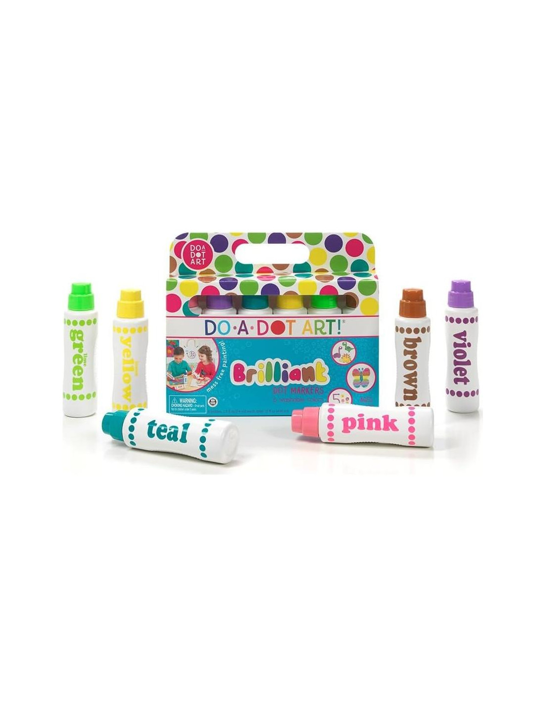 Do A Dot Art! Donde la imaginación comienza con un pequeño punto. Durante los últimos 24 años, niños de todo el mundo han estado 'punteando' con Do A Dot Art! El Marcador de Puntos Original. Do A Dot Art! se ha convertido en un producto artístico básico en hogares y escuelas infantiles de todo el mundo. A los padres y maestros les encanta que sea tan fácil para sus hijos crear divertidas y imaginativas obras de arte abiertas, con posibilidades ilimitadas simplemente desenroscando la tapa y dejando volar la imaginación. Do A Dot Art! está diseñado y fabricado en los EE. UU. utilizando solo los materiales de la más alta calidad y probado a los más altos estándares. Descansa tranquilo sabiendo que tus hijos están usando productos de calidad fabricados en nuestra propia fábrica y empaquetados con amor y cuidado. Las artes y manualidades se han vuelto más fáciles y limpias con Do A Dot Art! Cada marcador tiene una gran punta de esponja que nunca se seca y hace un punto perfecto cada vez. Los marcadores Do A Dot Art! tienen pigmentos audaces y colores brillantes que secan rápido. Perfecto para superponer, mezclar colores y cubrir mucho espacio. El set de marcadores brillantes Do A Dot Art! viene con 6 marcadores lavables: Rosa, Verde Azulado, Violeta, Verde Lima, Amarillo Girasol y Marrón. ¡Ven a ver por qué Do A Dot Art! es el medio artístico número uno utilizado en escuelas infantiles y primarias de todo el mundo!