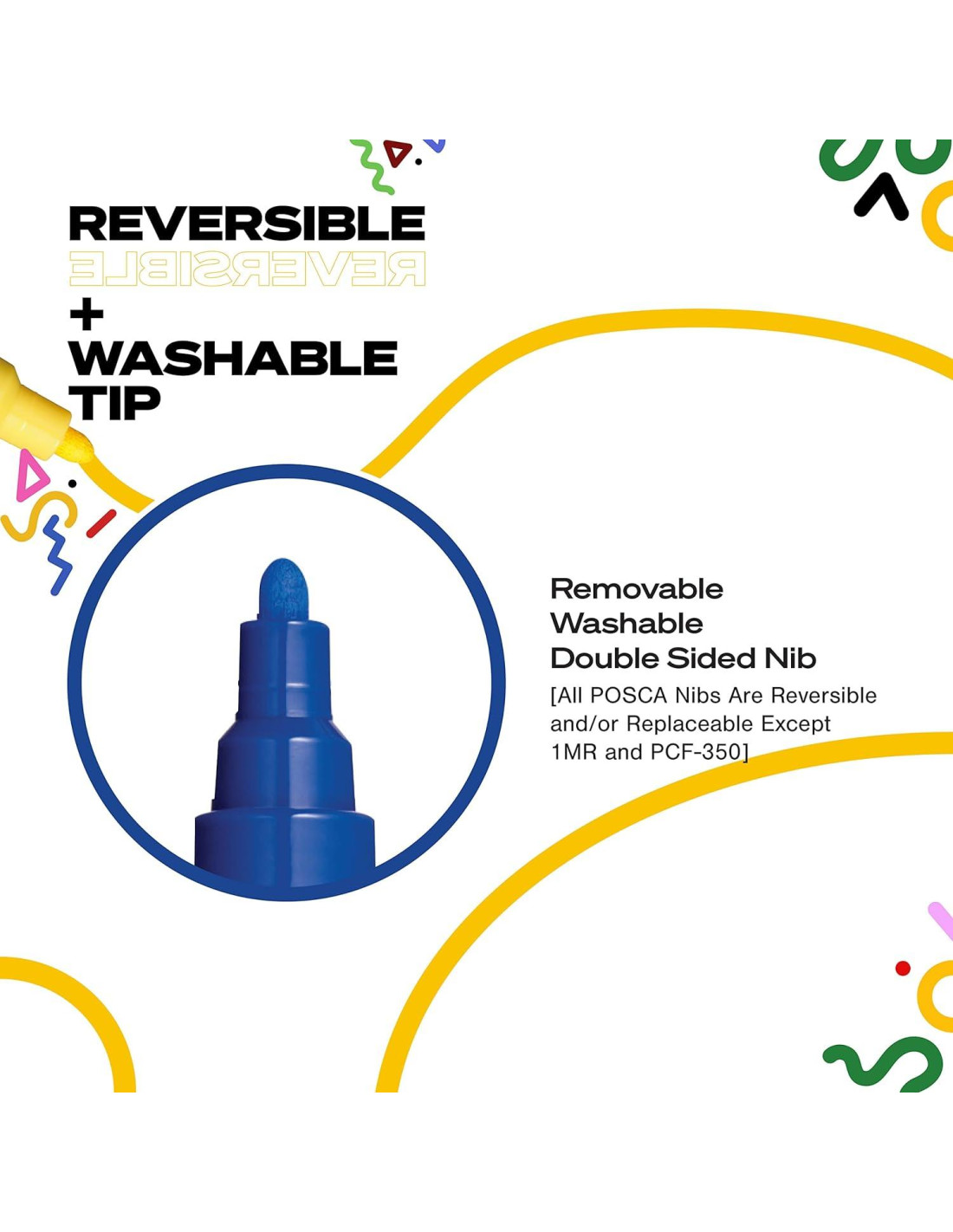 - Puntas Reversibles - Las puntas de bala reversibles permiten que los marcadores Posca duren el doble que otros marcadores; Para revelar el otro lado de las puntas, simplemente tira de la punta de bala hacia afuera para revelar uno de los dos lados, de 0.9mm a 1.3mm