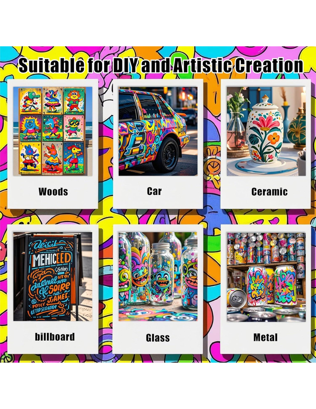 - Adecuado para Superficies Variadas: El marcador de pintura acrílica es perfecto para hacer graffiti en una amplia gama de superficies, incluyendo piedra, madera, cerámica, vidrio, tela, lienzo, plástico, textiles, metal, terracota, resina, conchas marinas, paredes, rocas y cuero.