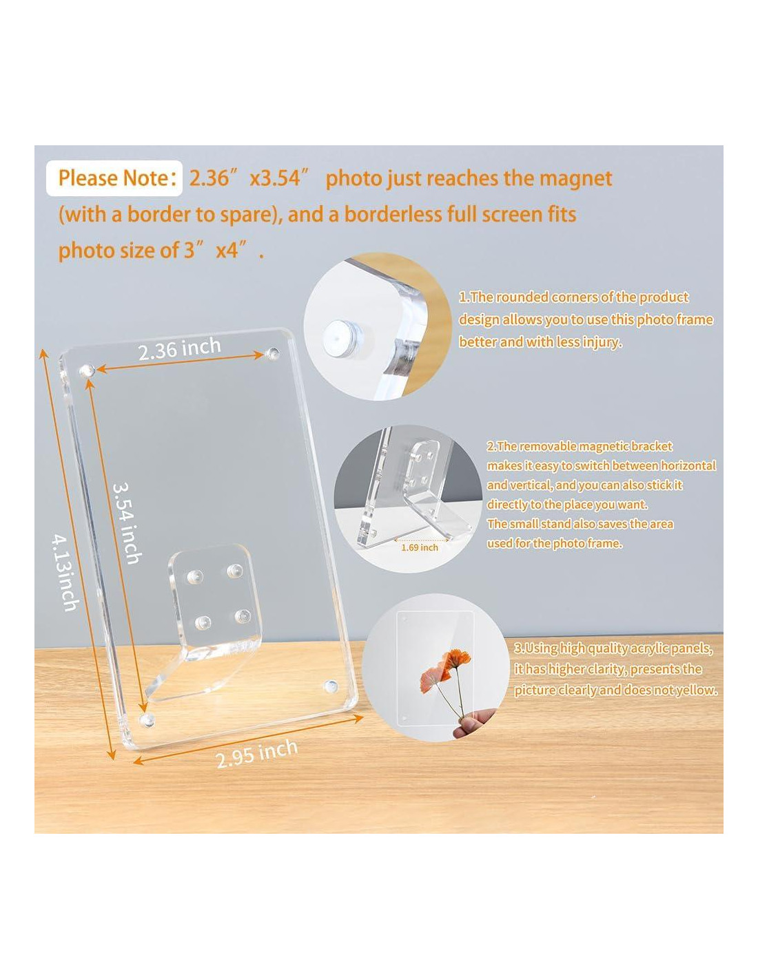 - Tamaño Aplicable Más: Adecuado para mostrar fotos de 6.0x9.0 cm / 7.5x10.5 cm (sin marco) (cambio horizontal y vertical), Compatible con Cámara Instax/Polaroid para Fotos de 5.1x7.6 cm