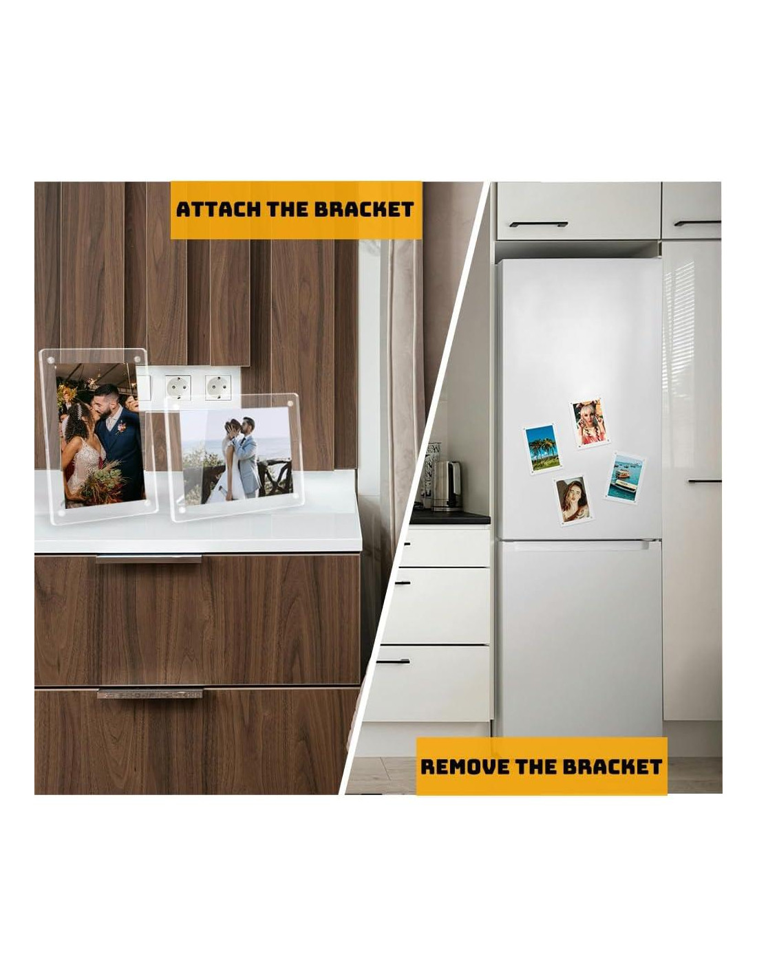 - Marco de fotos MULTIFUNCIONAL: fácil de instalar el soporte magnético, puede ser un marco de fotos de escritorio horizontal/vertical; quitar el soporte puede ser un marco de fotos magnético para refrigerador o marco de fotos de pared