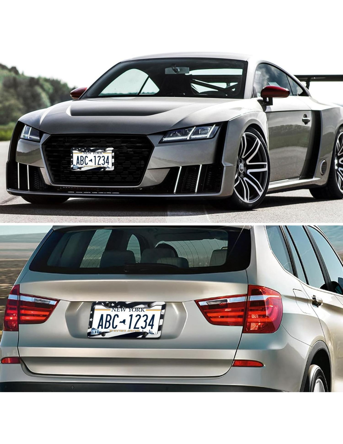 - DISEÑO DE PLACA DE LICENCIA ESTÁNDAR PERSONALIZADO UNIVERSAL DE EE. UU.: El marco está diseñado para la placa de licencia estándar americana de 30.5 cm x 15.2 cm. No bloqueará la etiqueta de registro, que es legal en la mayoría de los estados. El diseño único de la bandera nacional hace que la cubierta de la placa de licencia sea más hermosa y genial.